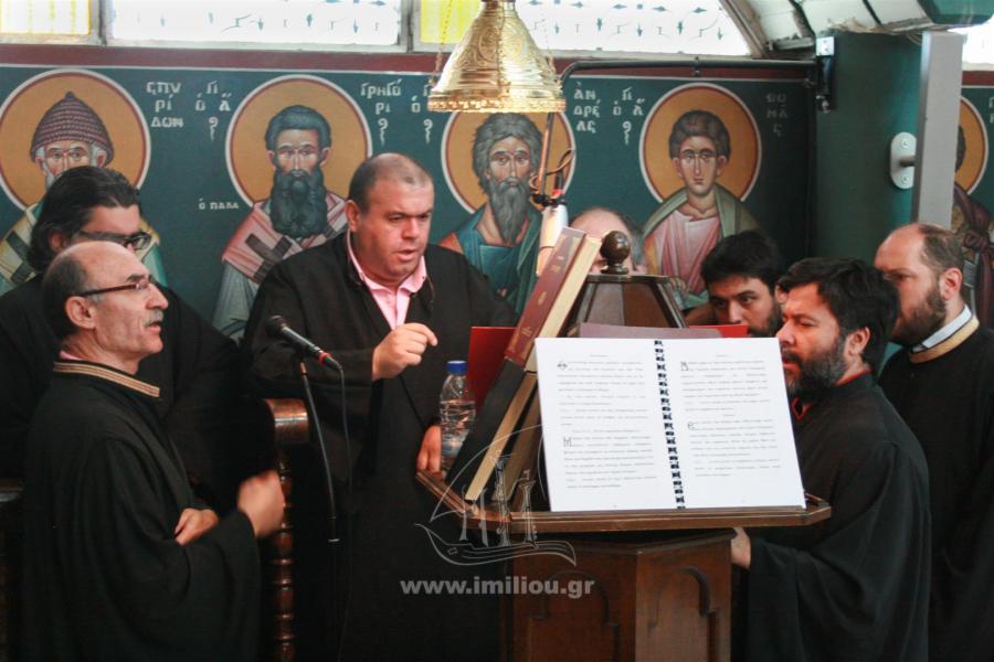 Στον όρθρο και τη Θεία Λειτουργία έψαλλε βυζαντινός χορός υπό τον κ. Λεωνίδα Δούκα, πρωτοψάλτη του Ι. Μητροπολιτικού Ναού Ευαγγελισμού της Θεοτόκου Ιλίου.
