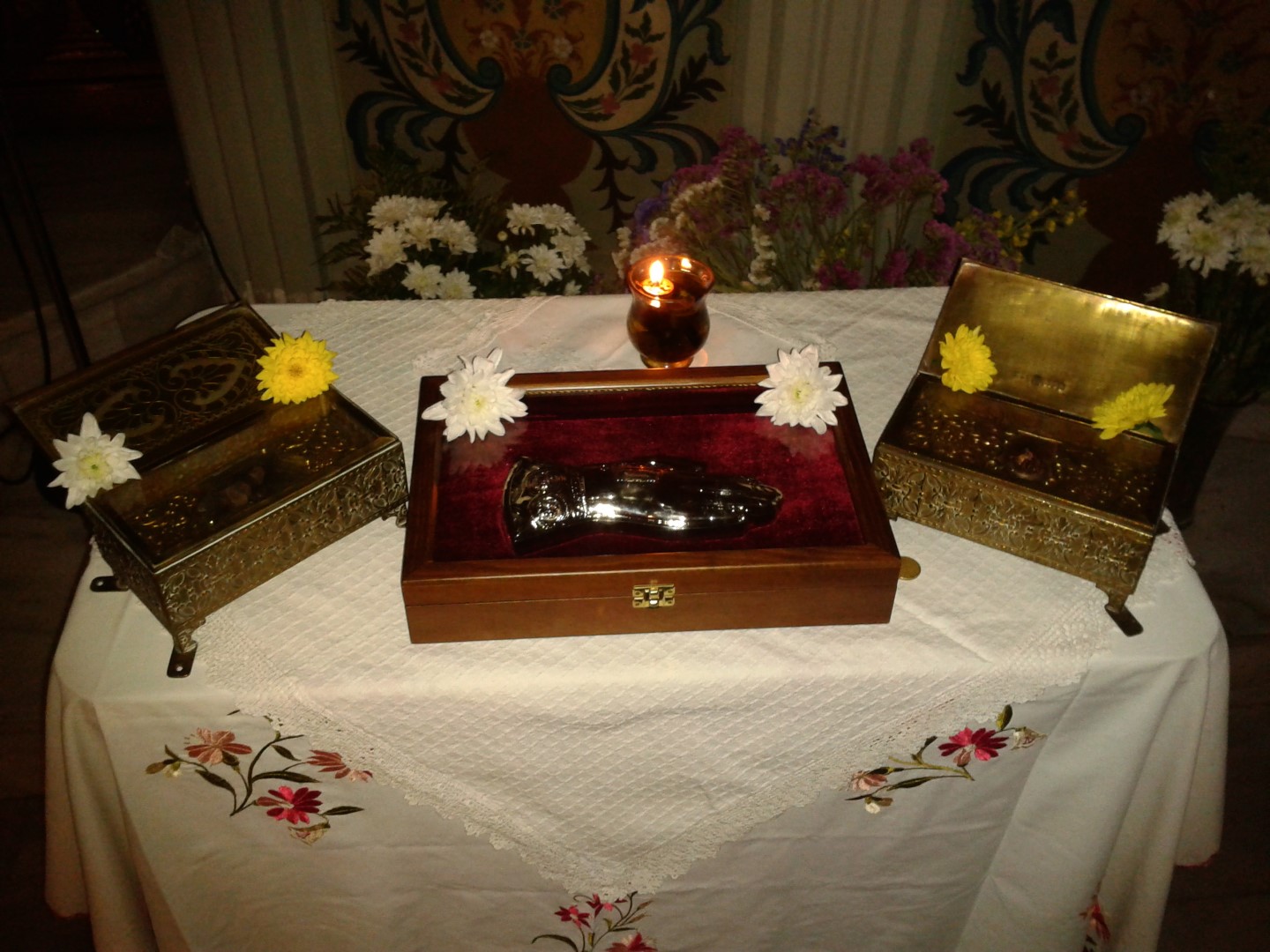 Κατά την διάρκεια των ακολουθιών οι φιλακόλουθοι πιστοί είχαν την ευκαιρία να προσκυνήσουν τεμάχια απο τα ιερά λείψανα των Αγίων Γεωργίου του τροπαιοφόρου, Νεκταρίου Πενταπόλεως, Μόδεστου Αρχιεπισκόπου Ιεροσολύμων, Μητροδώρας και της Νυμφοδώρας, τα οποία φυλάσσονται εις τον Ιερό Ναό μας.