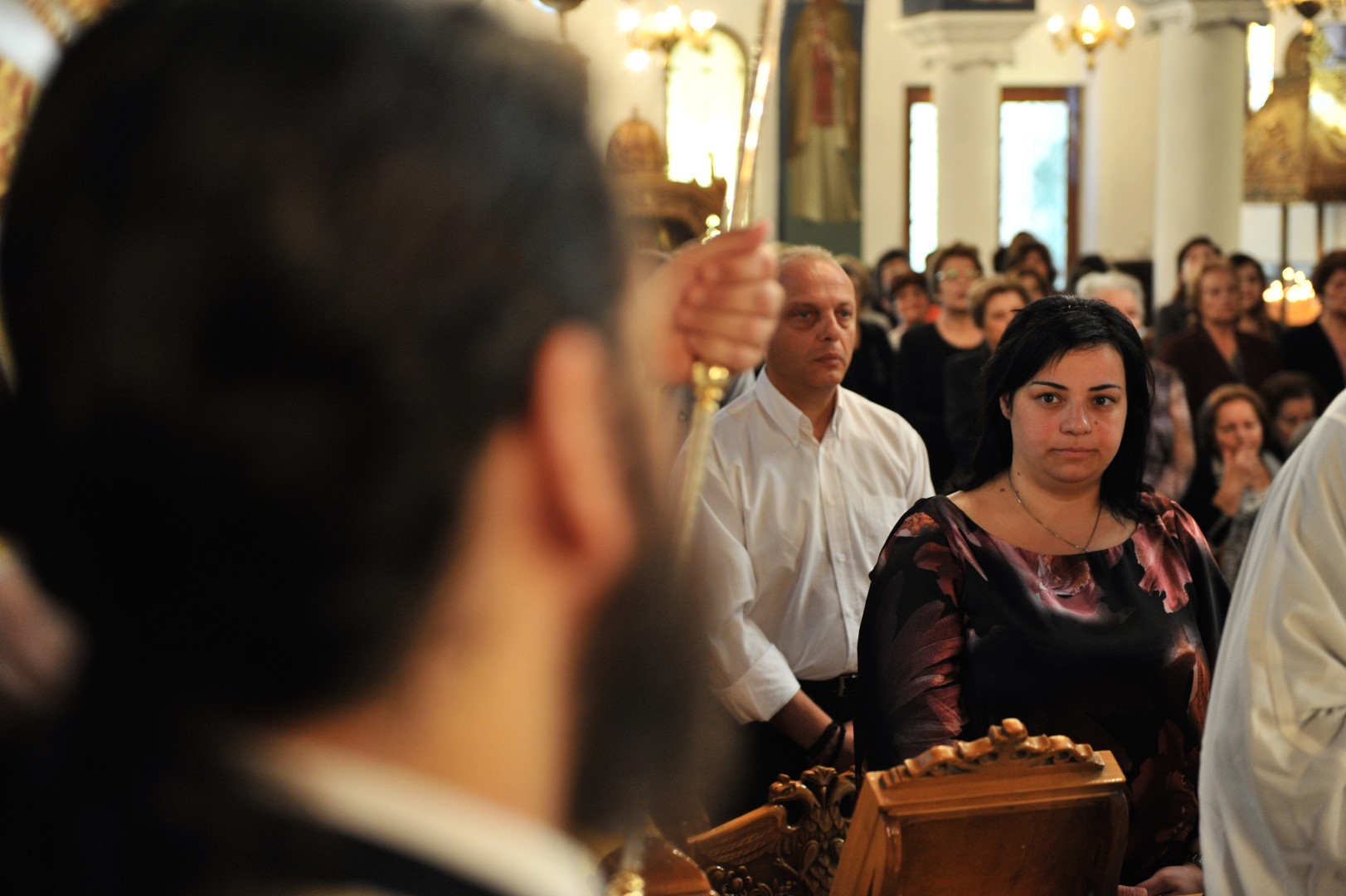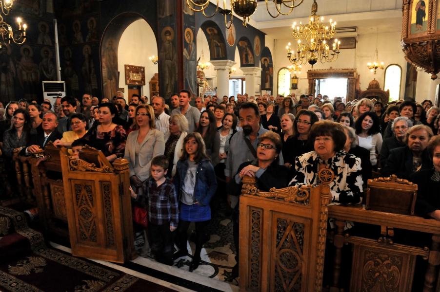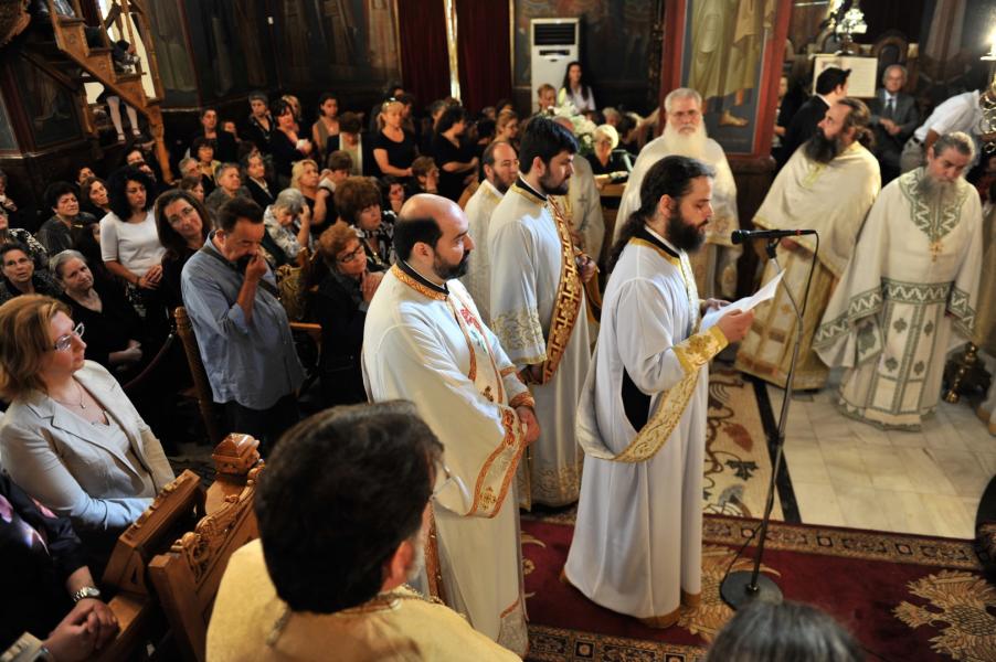 Οι ενορίτες των Άνω Λιοσίων είχαν κατακλύσει από το πρωί τον Ιερό Ναό, μια και ο π. Γεώργιος έχει υπηρετήσει επί πολλά έτη στον ναό αυτό και ως διάκονος αλλά και ως λαϊκό στέλεχος των νεανικών κινήσεων.