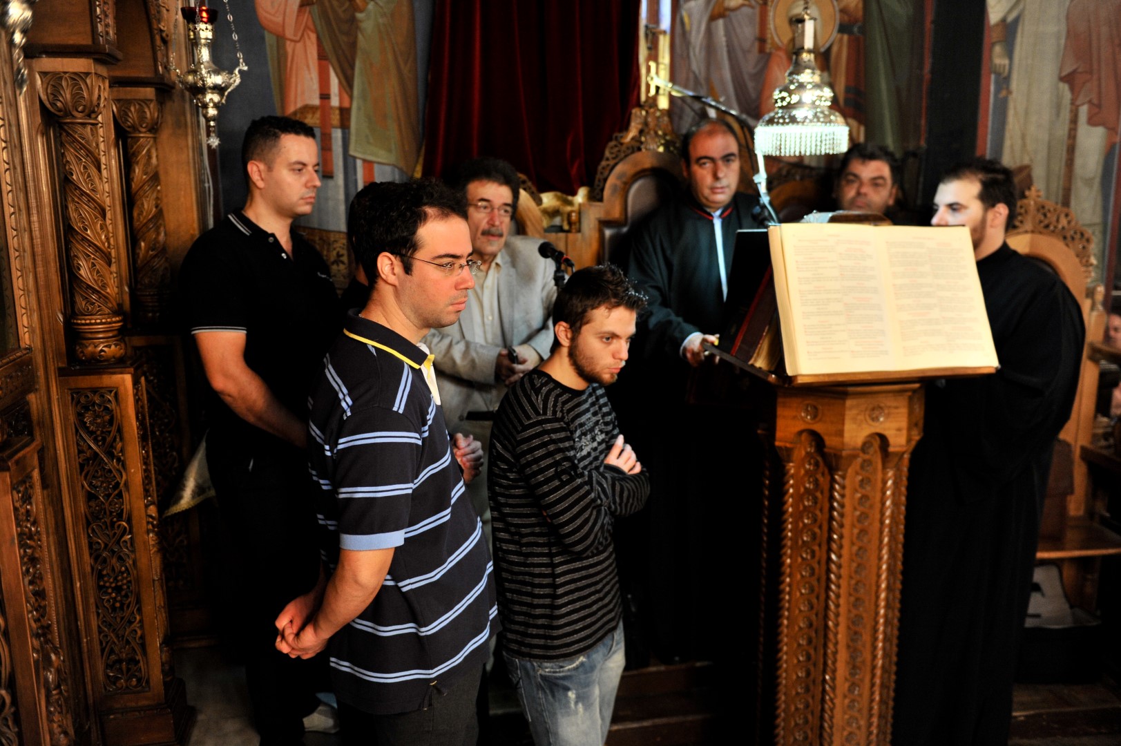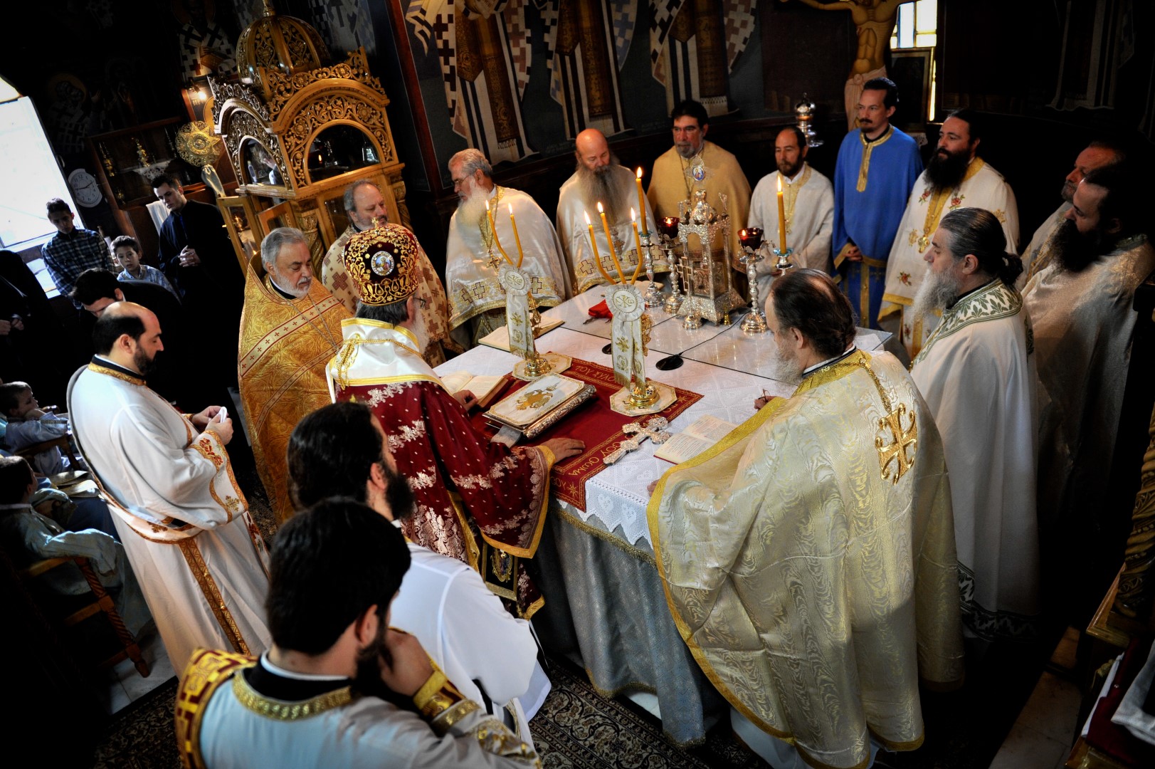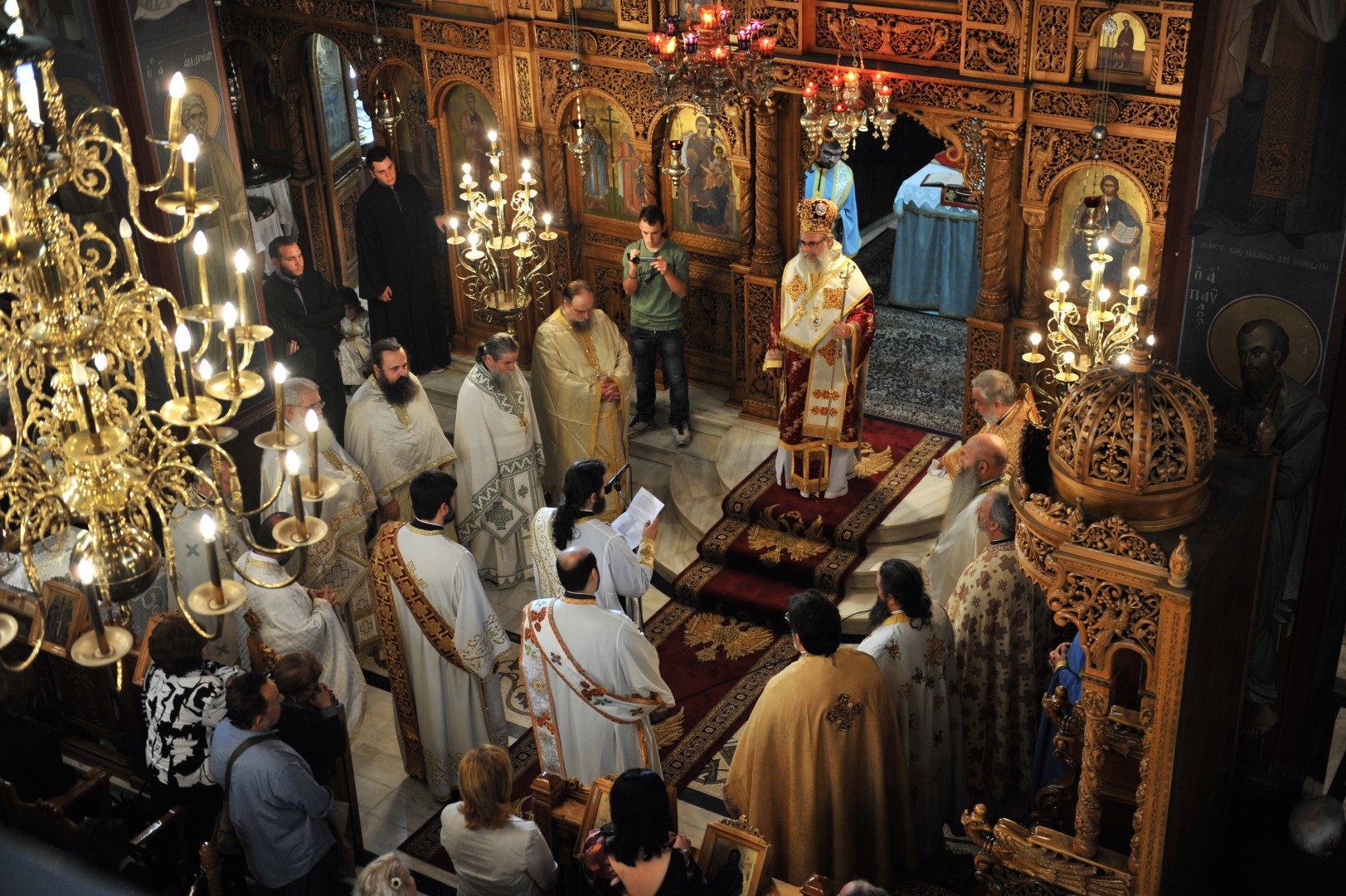 Παρέστησαν εκπρόσωποι από την Ιερά Μονή Παντοκράτορος Αγίου Όρους, οι ιερομ. Επιφάνιος και μον. Βησσαρίων, κατόπιν ευλογίας του καθηγουμένου Αρχιμ. Γαβριήλ, ο ιεροκήρυκας της Ι.Μ. Ιλίου π. Αγαθάγγελος Κόκλας, ο Γενικός Αρχιερατικός επίτροπος π. Εμμανουήλ Σέρβος, οι Αρχιερατικοί επίτροποι Καματερού και Φυλής, π. Γεώργιος Θεοδωρόπουλος και π. Νικόλαος Κοτίνης καθώς και πολλοί άλλοι ιερείς και διάκονοι. Στο αναλόγιο, μαζί με τους ιεροψάλτες του ναού, βρίσκονταν οι πρωτοψάλτες και καθηγητές της Βυζαντινής Μουσικής κ. Δημήτριος Γαλάνης και κ. Γεώργιος Ρεμούνδος.
