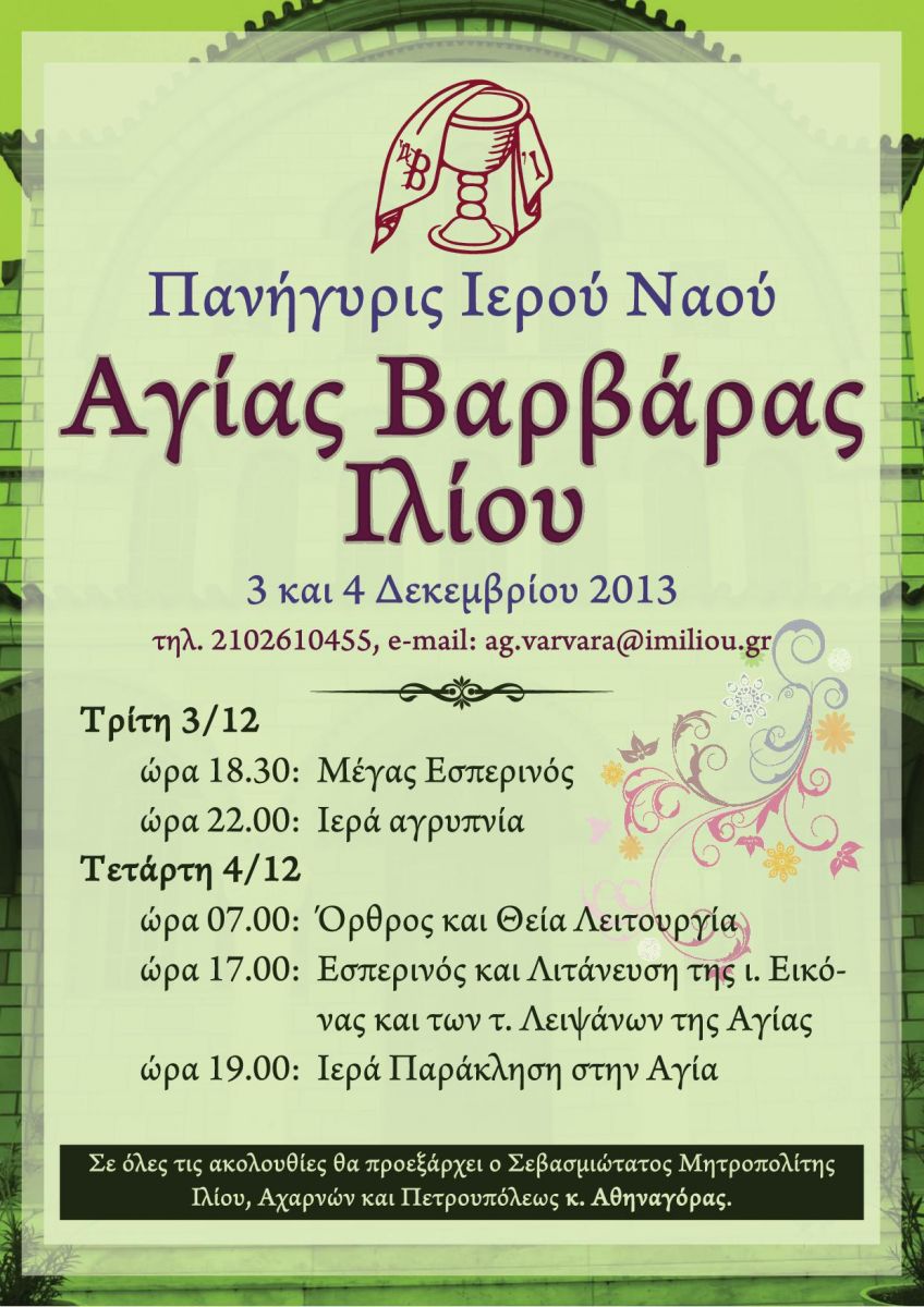 Πανήγυρις Αγ. Βαρβάρας Ιλίου