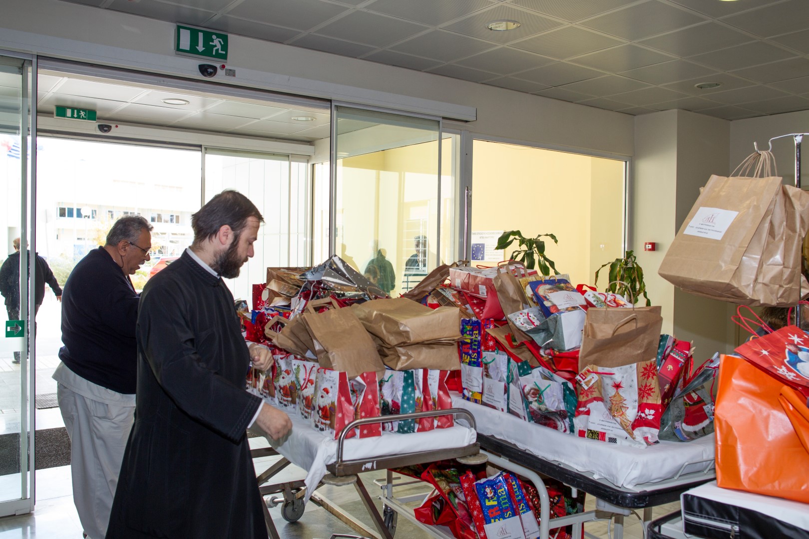 Κατόπιν, ο Σεβασμιώτατος κ. Αθηναγόρας, ο π. Ιωσήφ Έκερτ, που καθημερινά διακονεί στο νοσοκομείο μαζί με ομάδα εθελοντών της Ιεράς Μητροπόλεως, και οι άλλοι ιερείς επισκέφθηκαν τους θαλάμους των ασθενών και έδωσαν δώρα, τις ευχές και την ευλογία τους.