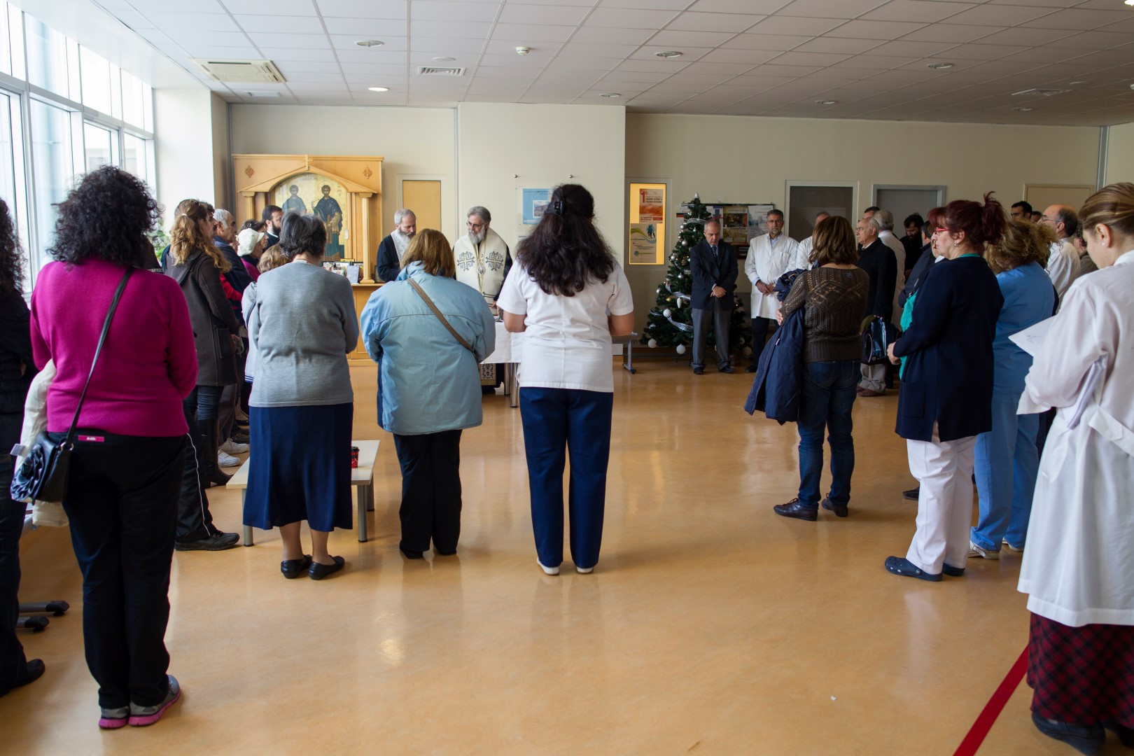 Για άλλη μία φορά ο Σεβασμιώτατος Μητροπολίτης Ιλίου κ. Αθηναγόρας επισκέφθηκε το Νοσοκομείο και τέλεσε την ακολουθία του αγιασμού στην οποία συμμετείχαν οι ιατροί, το νοσηλευτικό προσωπικό, οι εργαζόμενοι και ασθενείς.