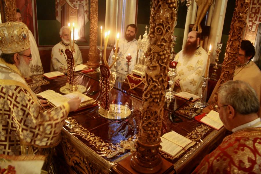 Ο Σεβασμιώτατος χοροστάτησε στον όρθρο και προεξήρχε της Θείας Λειτουργίας, στην οποία συμμετείχαν ο Αρχιερατικός Επίτροπος Ιλίου π. Χαράλαμπος Σταχτέας και οι ιερείς του ναού, Αρχιμ. Ιερώνυμος, Πρωτ. Θεοφάνης, Πρωτ. Γεώργιος, Πρεσβ. Παναγιώτης καθώς και οι αγαπητοί ιερείς Πρωτ. Νικόλαος Κουτούζος και ο συνταξιούχος πλέον π. Αντώνιος.