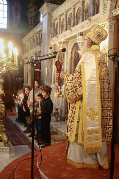Την ώρα του Θείου Κηρύγματος ο Σεβασμιώτατος εξεφώνησε λόγο που συνδύασε και τις δύο εορτές της ημέρας: την έναρξη του Τριωδίου και την παραβολή του Τελώνου και του Φαρισαίου αλλά και την εορτή της Υπαπαντής.
