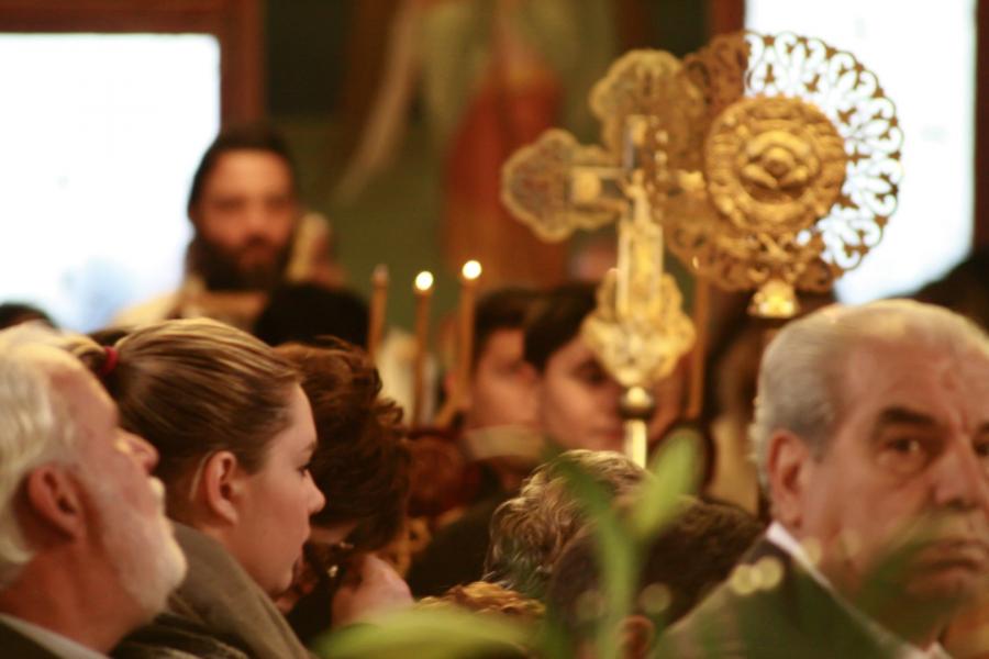 Πλήθος λαού συμμετείχε στη Θεία Λειτουργία.