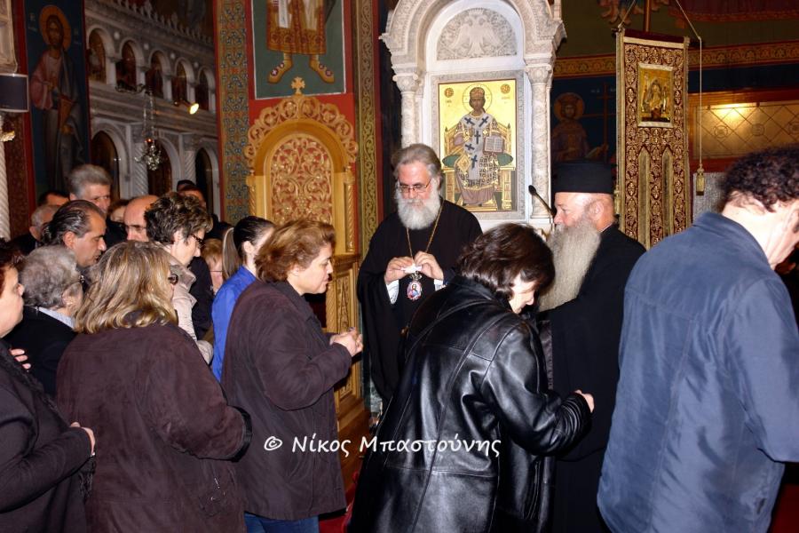 Στο τέλος του Εσπερινού, τόσο οι ιερείς όσο και το πολυπληθές Εκκλησίασμα, πέρασαν και ασπάστηκαν το χέρι του Σεβασμιωτάτου αιτούμενοι συγχωρήσεως και ανταλλάσσοντας, ως συνηθίζεται, τον ασπασμό της αγάπης και της συγχωρήσεως μεταξύ τους. Παράλληλα μοιράστηκε ένα αναμνηστικό με την κατανυκτική ευχή του Οσίου Εφραίμ του Σύρου.