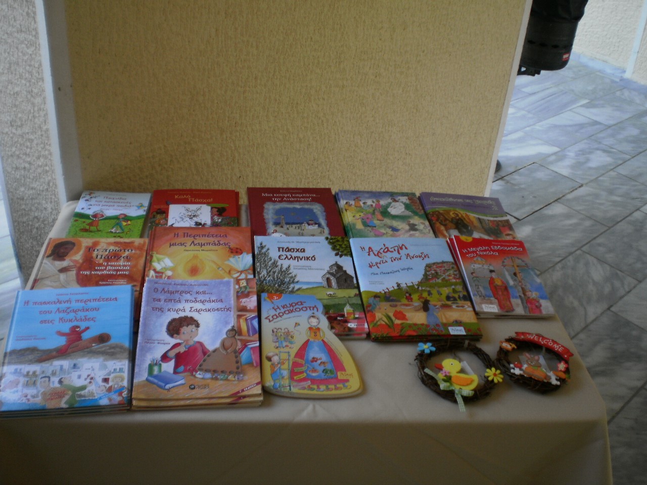 Στην έκθεση αυτή τα παιδιά φυλλομέτρησαν και προμηθεύθηκαν βιβλία σχετικά με τη Μ. Σαρακοστή και το Πάσχα, έφτιαξαν Ανοιξιάτικες κατασκευές και διάλεξαν τις πασχαλινές λαμπάδες τους.