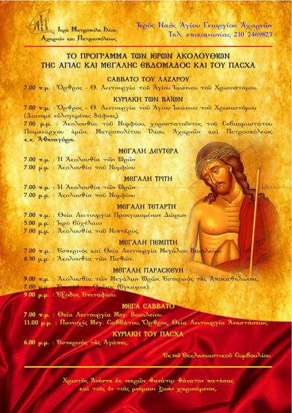 Πρόγραμμα ακολουθιών Ι.Ν. Αγ. Γεωργίου Αχαρνών