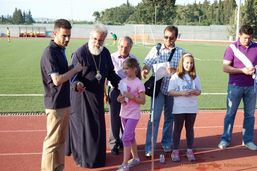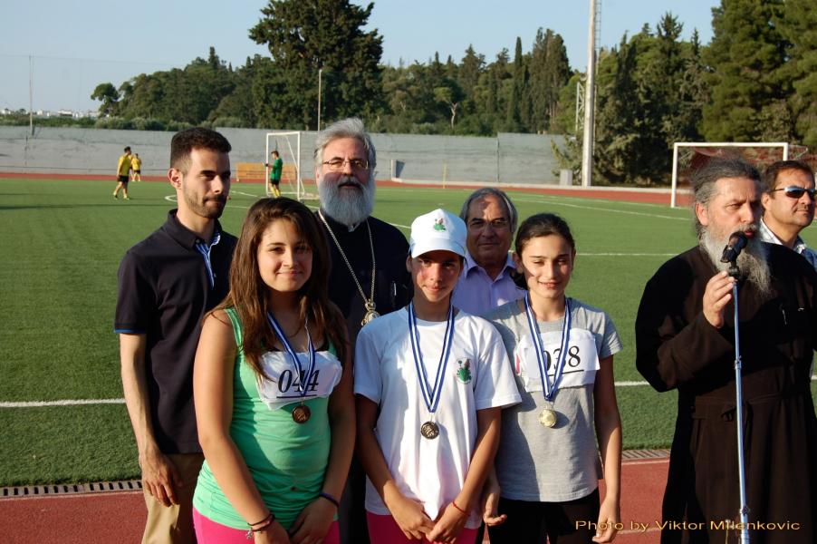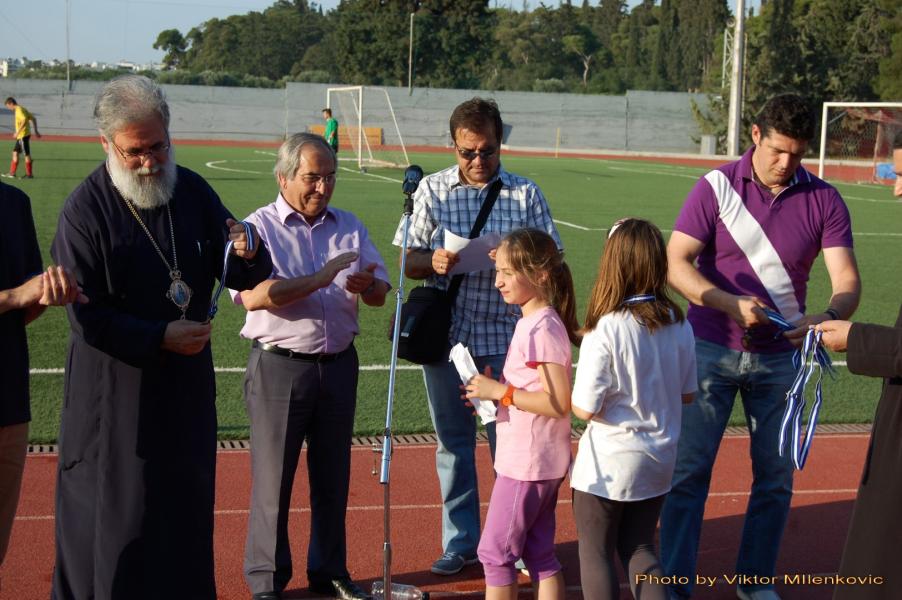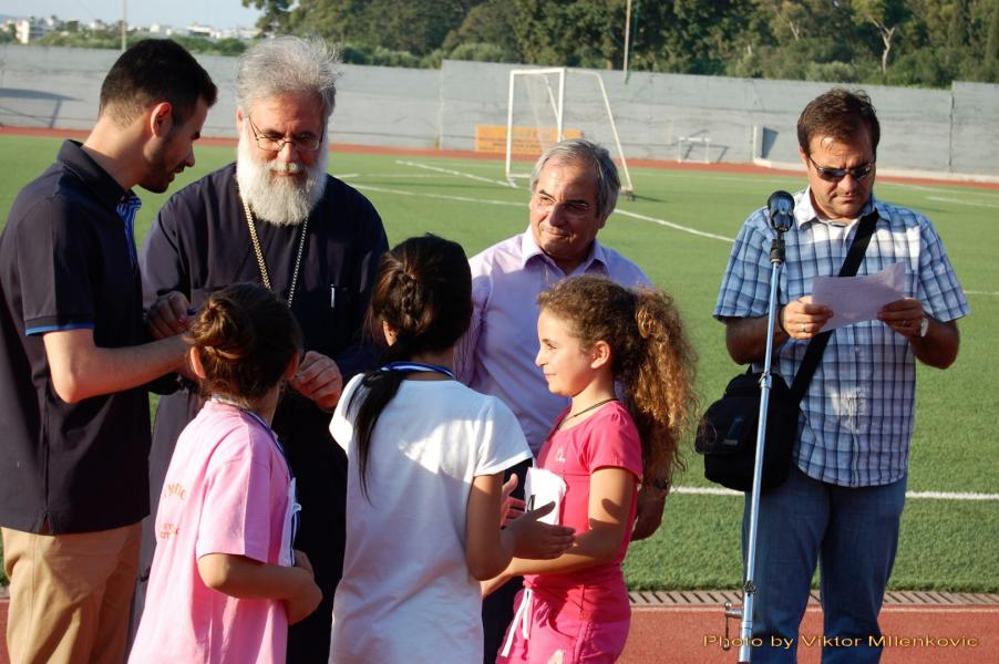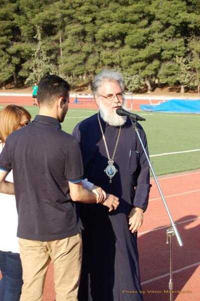 Την εορτή έκλεισε με ομιλία του ο Σεβασμιώτατος Ποιμενάρχης μας κ.κ. Αθηναγόρας, ο οποίος ενημέρωσε τους γονείς και τα παιδιά για την εκκλησιαστική κατασκήνωση 2014 και έκανε τις απονομές στους νικητές του Τουρνουά και του στίβου.