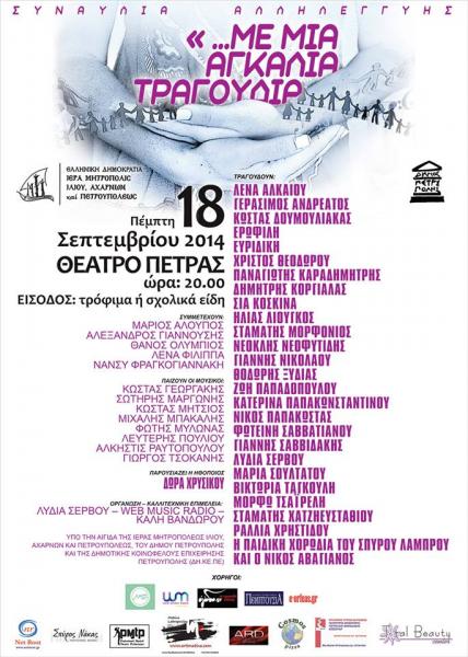 Σπουδαίοι καλλιτέχνες και μουσικοί, που ανταποκρίθηκαν στο κάλεσμα των διοργανωτών, γίνονται μια αγκαλιά κι ενώνουν το ταλέντο τους για έναν υπέροχο σκοπό! Στη συγκέντρωση τροφίμων και σχολικών ειδών για τους συνανθρώπους μας που τα έχουν ανάγκη.