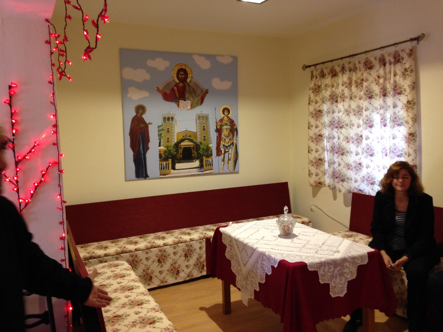 Λίγο μετά την τελετή κατέφθασε και ο Σεβασιώτατος Μητροπολίτης Κορωνείας κ. Παντελεήμων, φίλος της ενορίας του Αγίου Γεωργίου. Ακόμη μας επισκέφθηκαν ο Πρωτοσύγκελος π. Γαβριήλ Ασπρολούπος, ο Γενικός Αρχιερατικός π. Εμμανουήλ Σέρβος, οι πατέρες Ρωμανός, Γερμανός και Νικόλαος Κουτούζος, για να μοιραστούν μαζί μας τη χαρά των εγκαινίων.