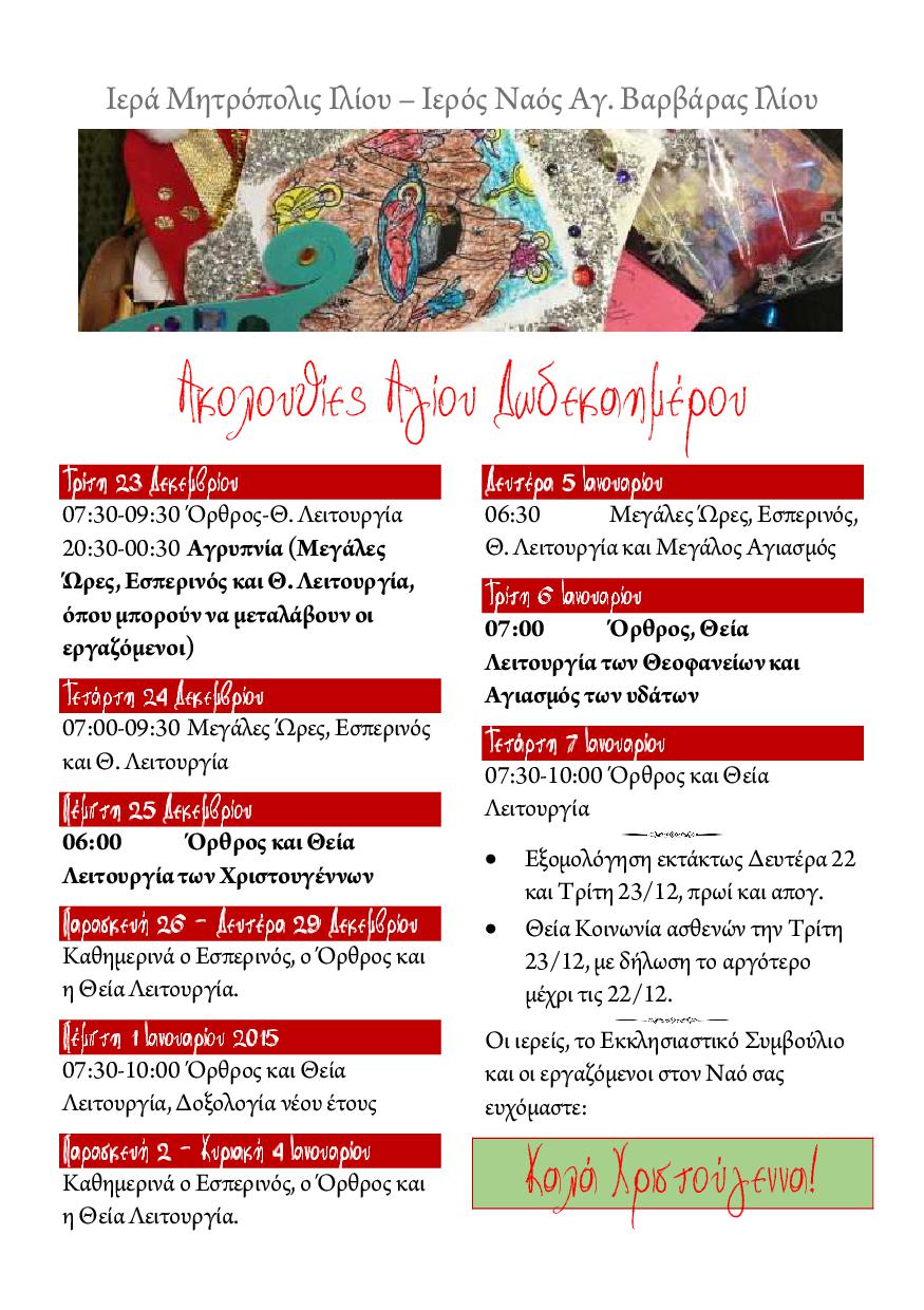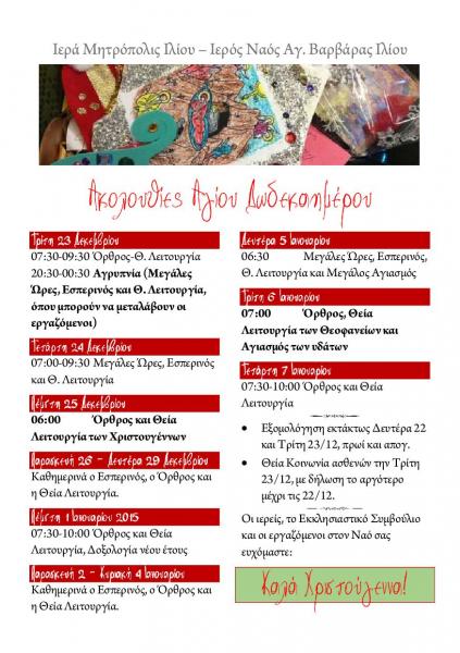 Πρόγραμμα ακολουθιών ΑΓΙΟΥ ΔΩΔΕΚΑΗΜΕΡΟΥ 2014