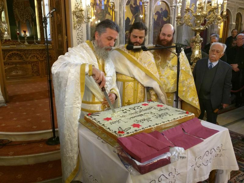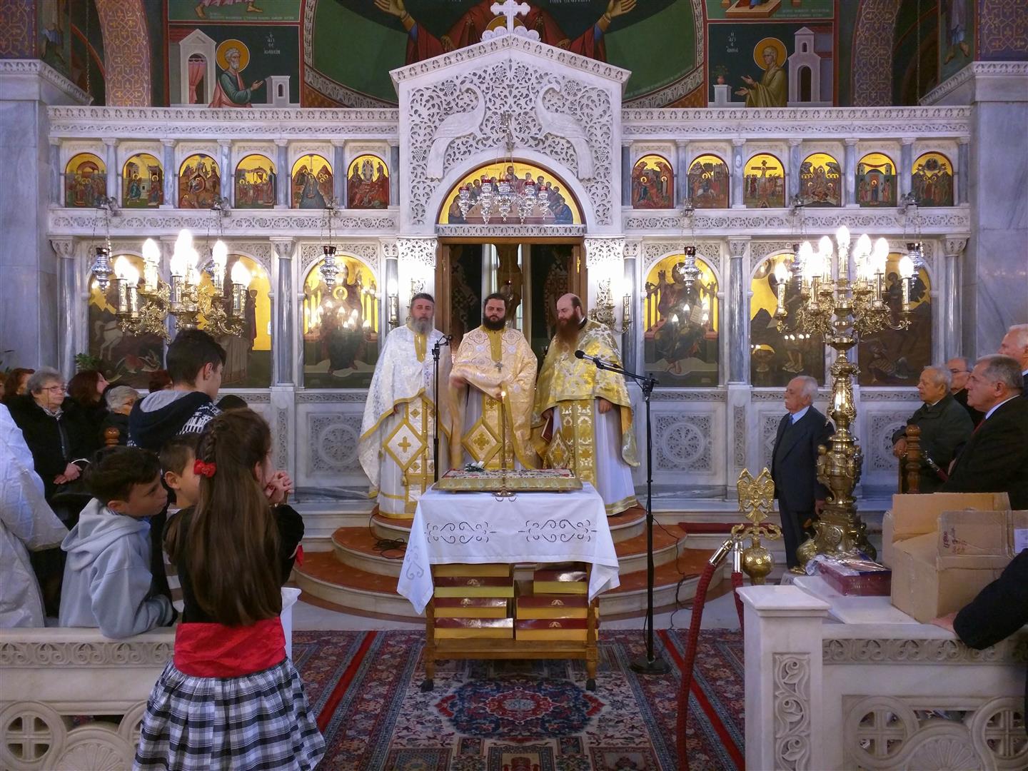 Κόπηκαν κομμάτια για όλους όσους συντελούν στην εύρυθμη λειτουργία της ενορίας αλλά και για όλους τους ενορίτες και προσκυνητές που βρίσκονταν στο ναό. Μάλιστα, στην πίτα βρισκόντουσαν 11 φλουριά, τα οποία βρήκαν όλα οι ενορίτες, οι οποίοι δέχθηκαν και ως μικρό δώρο το νέο εγκόλπιο ημερολόγιο του Ιερού Ναού.