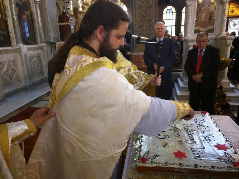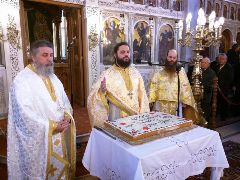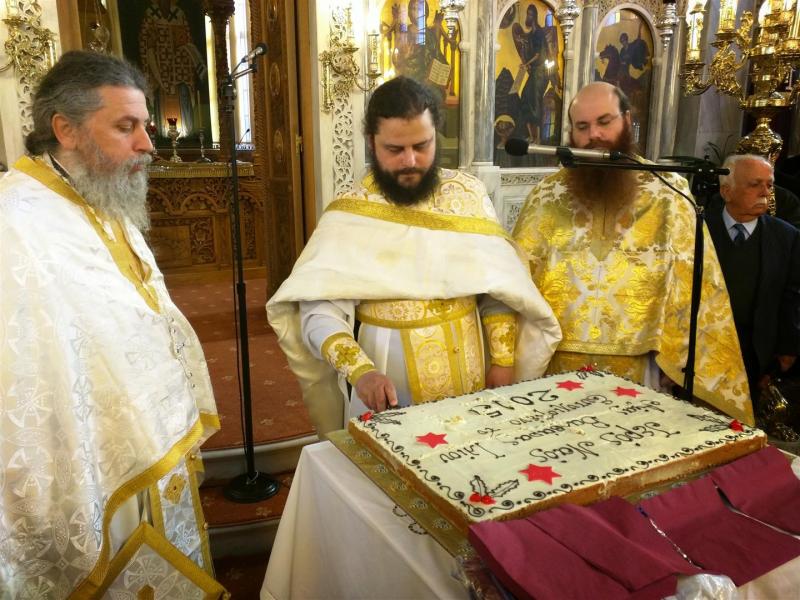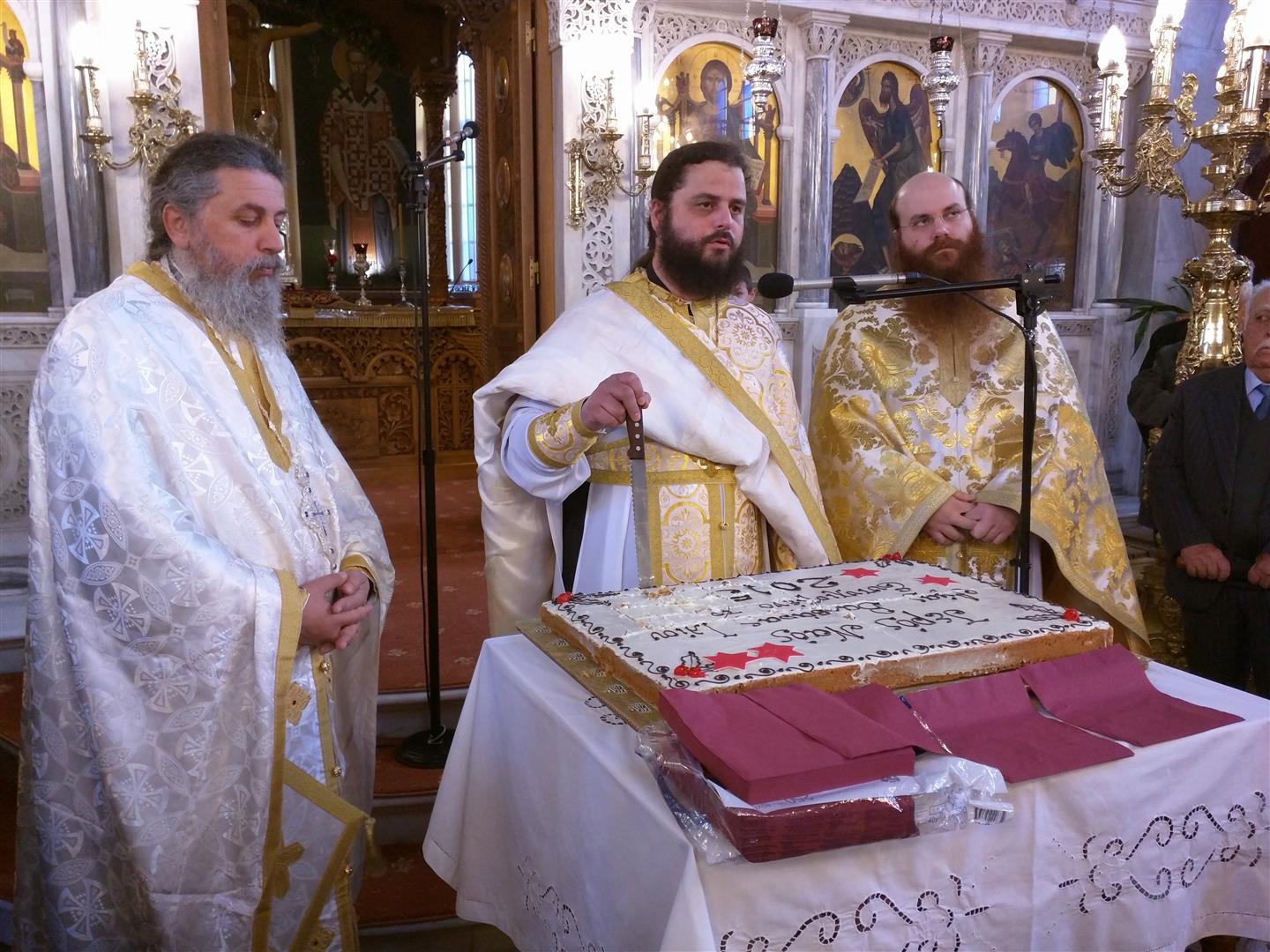 Αμέσως μετά, ο πρόεδρος του Εκκλησιαστικού Συμβουλίου του Ναού Πρωτ. Γεώργιος Βασιλείου απηύθυνε σύντομο λόγο περί του χρόνου ως δυνάστη, έναντι του χρόνου ως εργαλείου για την 8η ημέρα της δημιουργίας. Κατόπιν, κόπηκε η αγιοβασιλιάτικη πίτα της ενορίας, στην οποία συμμετείχε και ο πρόεδρος του Ταμείου Ενοριακής Δράσεως Πρωτ. Δημήτριος Παναγακόπουλος αλλά και ο Πρεσβ. Παναγιώτης Κολοκώτσιος.