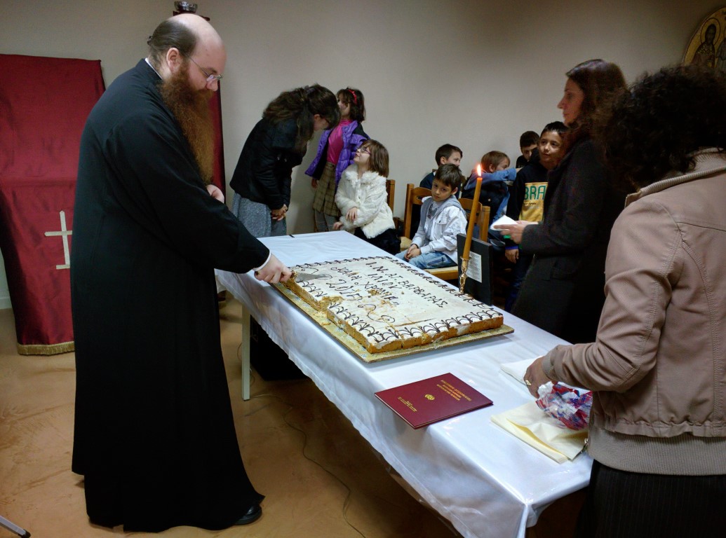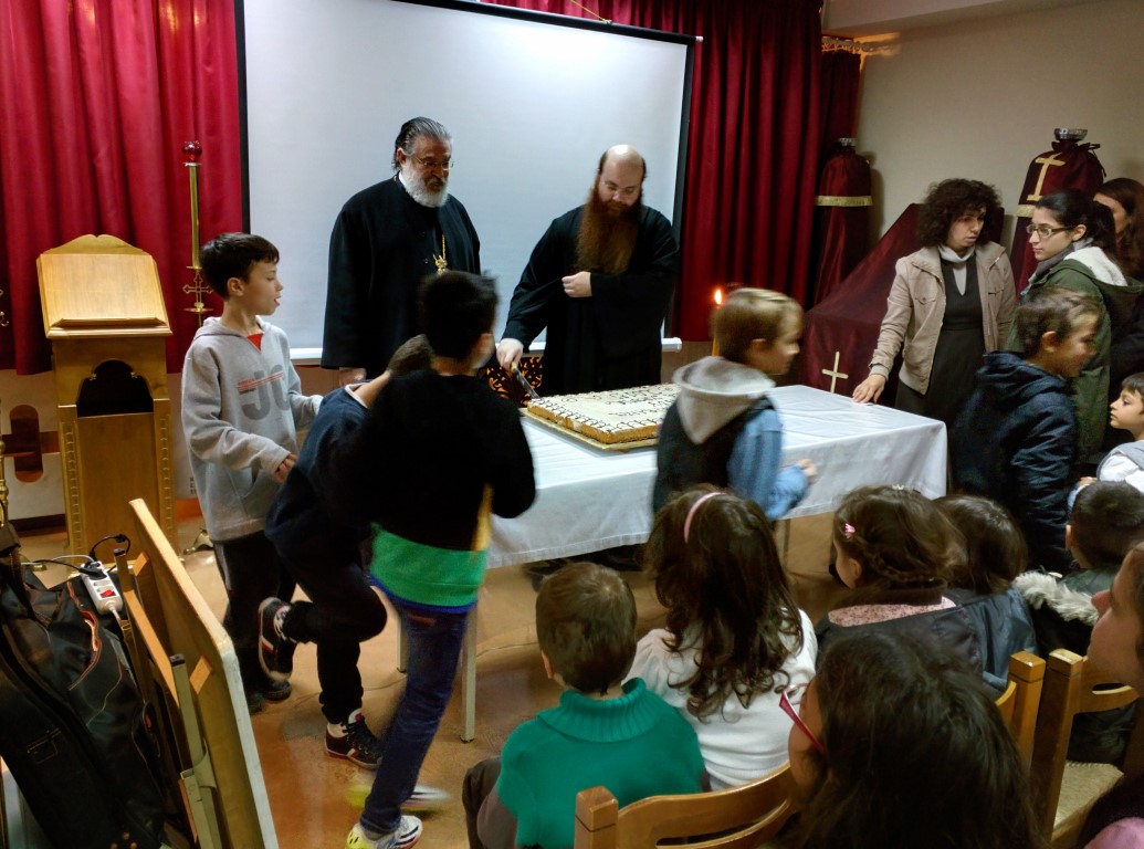 Τα παιδιά έκοψαν την πίτα, πήραν όλα δώρα και είδαν εκπαιδευτική ταινία. Στην κοπή παρευρέθηκε και ευχήθηκε ο Σεβασμιώτατος Μητροπολίτης Ηλιουπόλεως Αιγύπτου κ. Θεόδωρος.