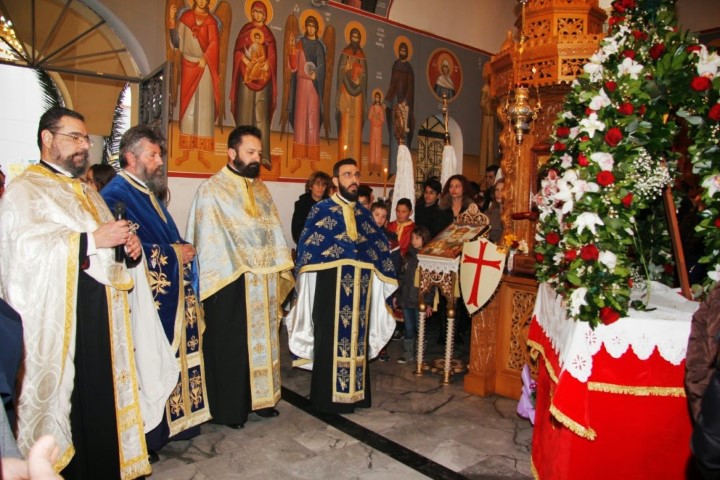 Οι εφημέριοι του ναού π. Κωνσταντίνος Τόλιας και π. Πέτρος Θεοδοσίου υποδέχθηκαν τον λαό του Θεού και τους κληρικούς από τις γύρω περιοχές που προσήλθαν να συνεορτάσουν. Μετά τον Εσπερινό, ακολούθησε κέρασμα στην αίθουσα του Ιερού Ναού.