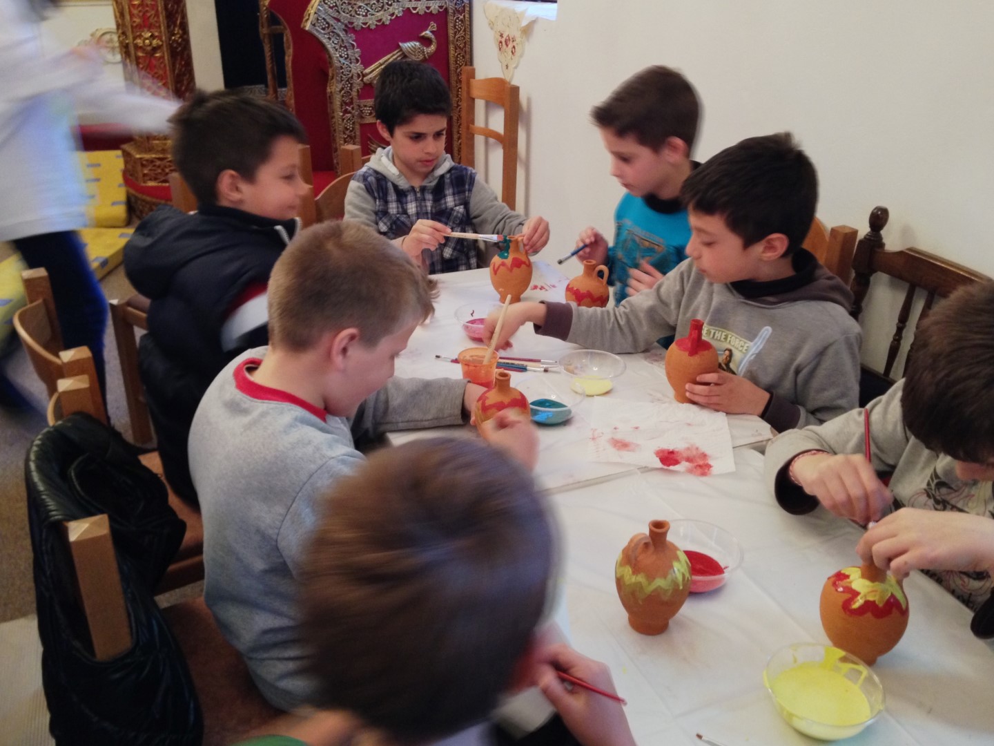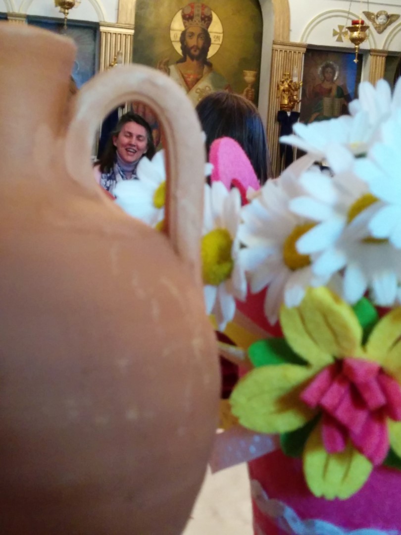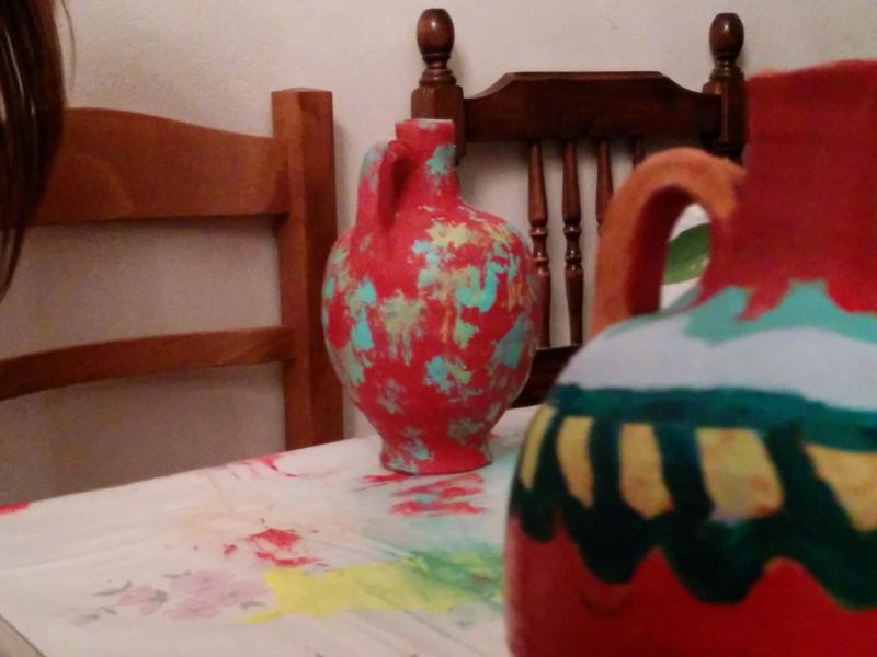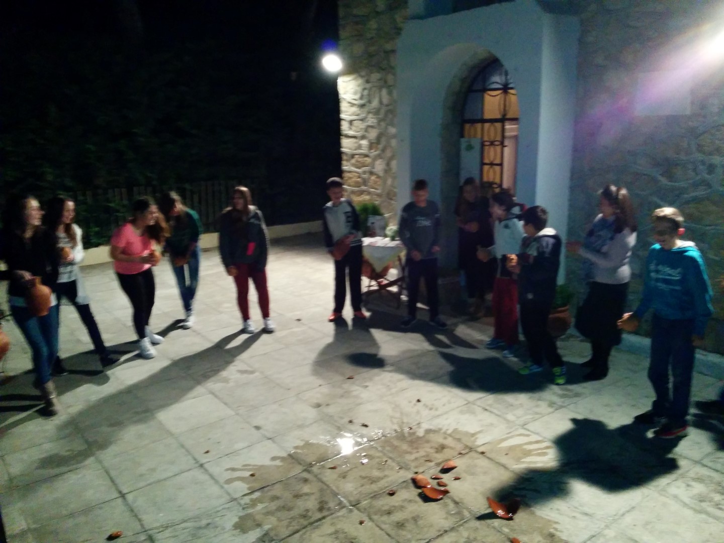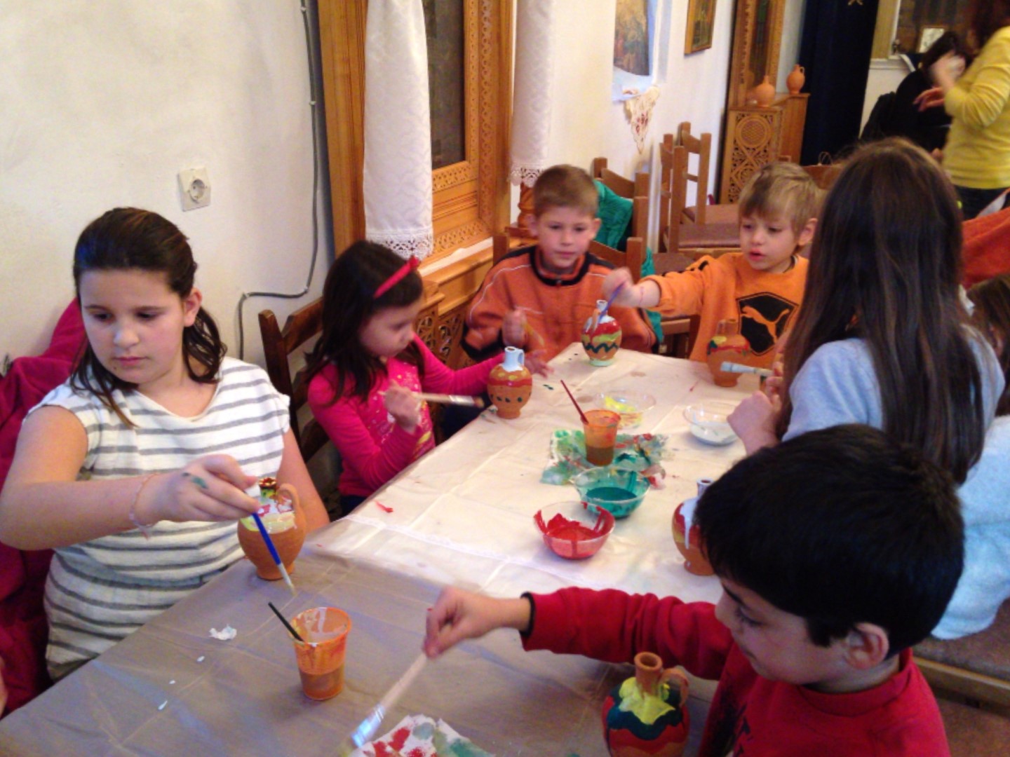 Στη συνέχεια είχαμε ετοιμάσει ένα καλλιτεχνικό εργαστήρι για τα μικρότερα παιδιά (5-11 ετών) όπου ξεδίπλωσαν το ταλέντο τους ζωγραφίζοντας πήλινα κανατάκια ενώ τα μεγαλύτερα (12-15 ετών) έκαναν αναπαράσταση του πασχαλινού εθίμου των «μπότηδων» σπάζοντας πήλινα κανάτια γεμάτα με νερό στο προαύλιο του ιερού ναού του Αγίου Αντωνίου!