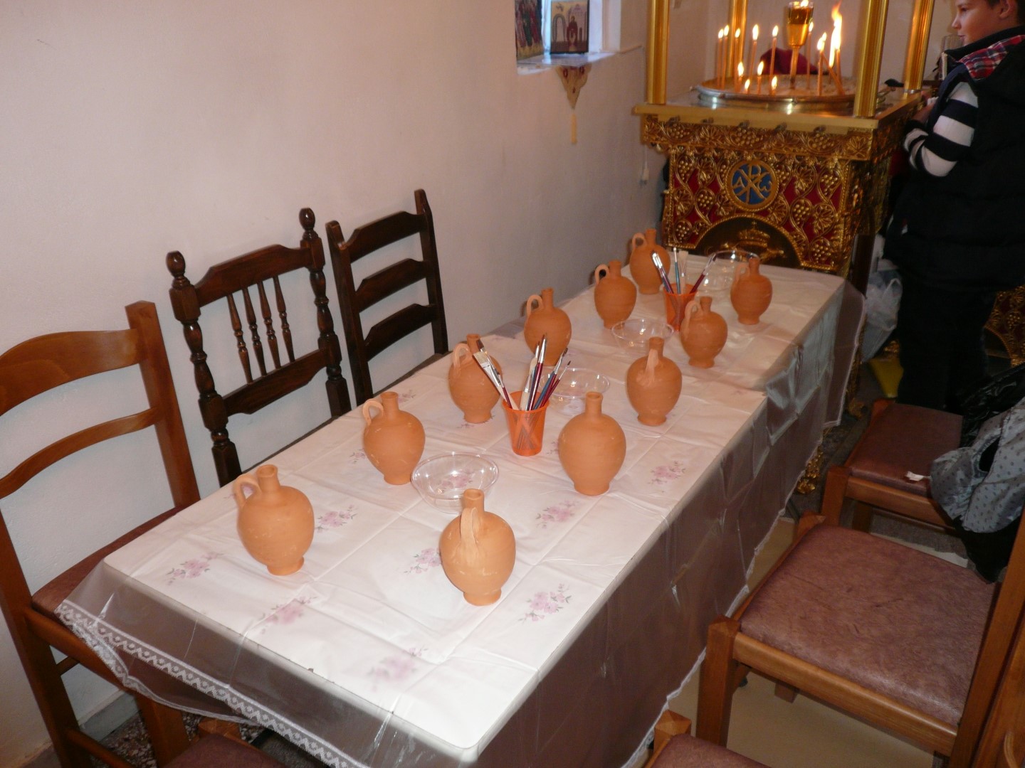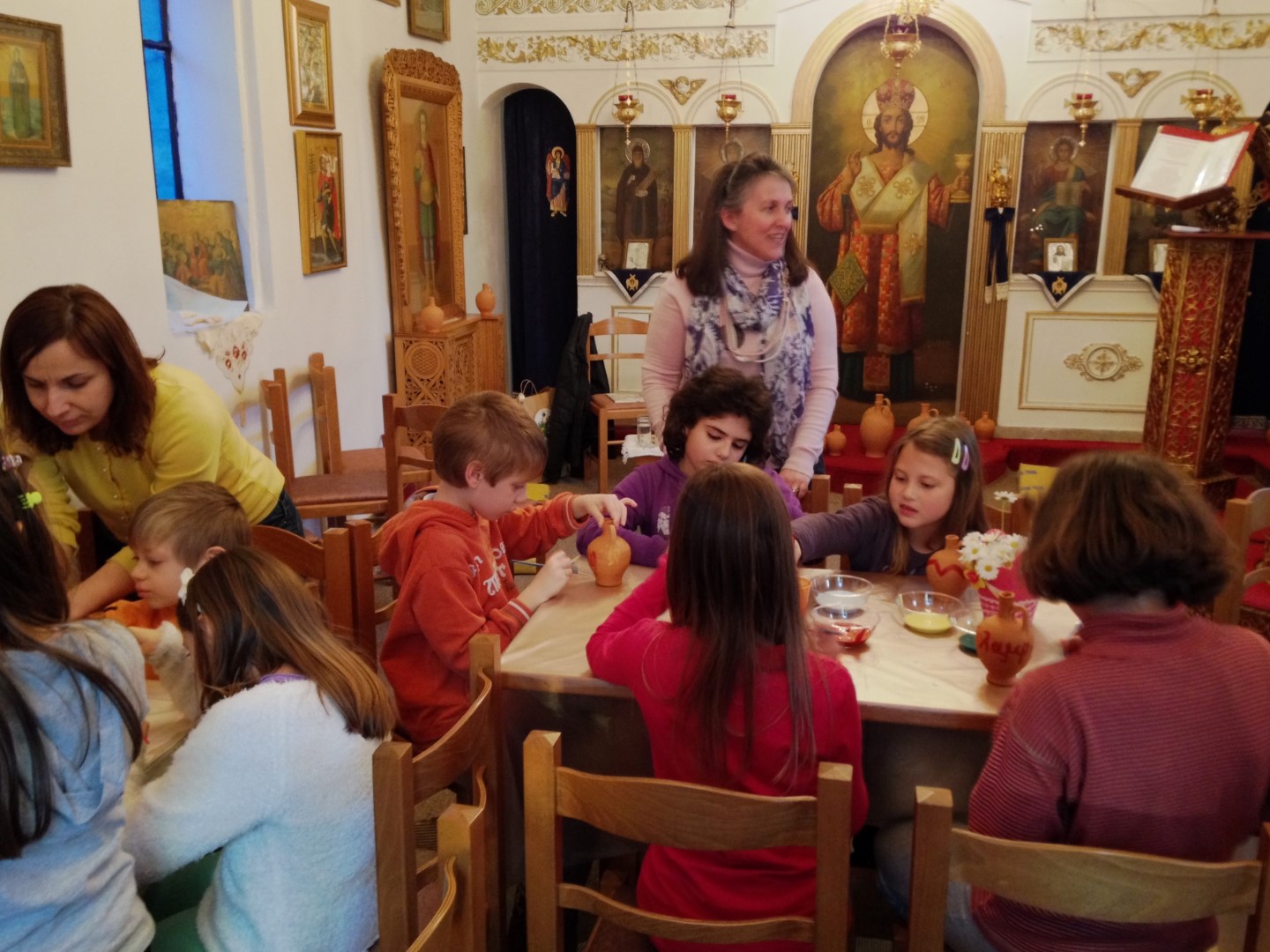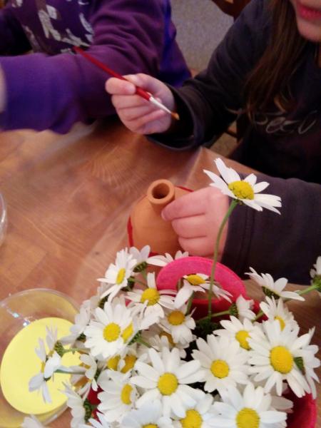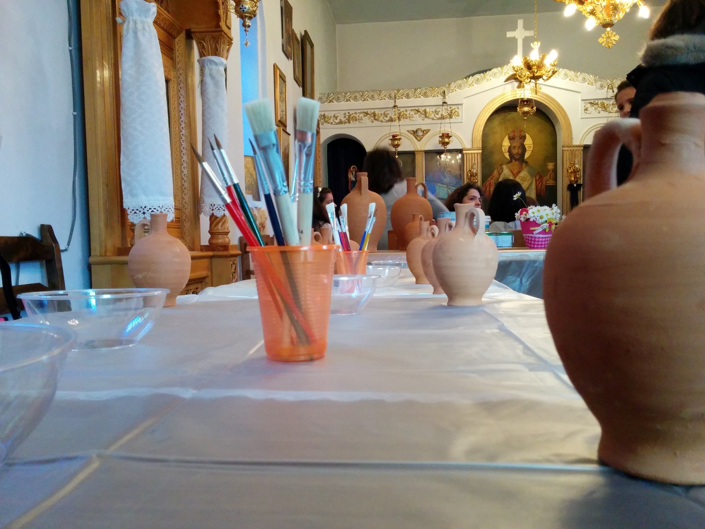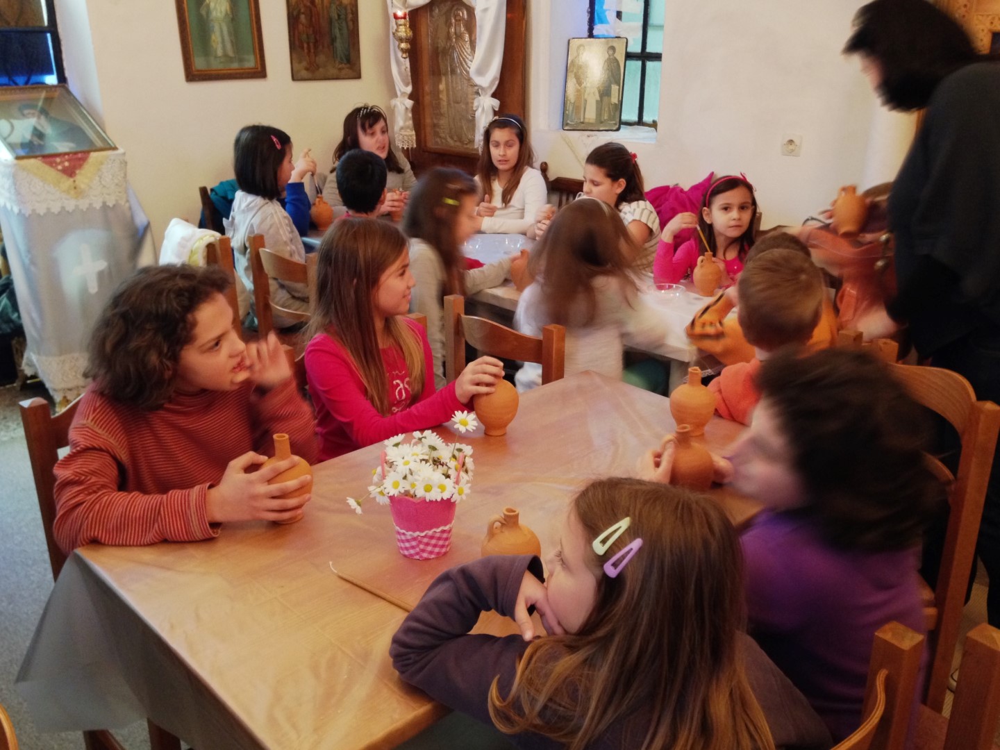 Στη συνέχεια είχαμε ετοιμάσει ένα καλλιτεχνικό εργαστήρι για τα μικρότερα παιδιά (5-11 ετών) όπου ξεδίπλωσαν το ταλέντο τους ζωγραφίζοντας πήλινα κανατάκια ενώ τα μεγαλύτερα (12-15 ετών) έκαναν αναπαράσταση του πασχαλινού εθίμου των «μπότηδων» σπάζοντας πήλινα κανάτια γεμάτα με νερό στο προαύλιο του ιερού ναού του Αγίου Αντωνίου!