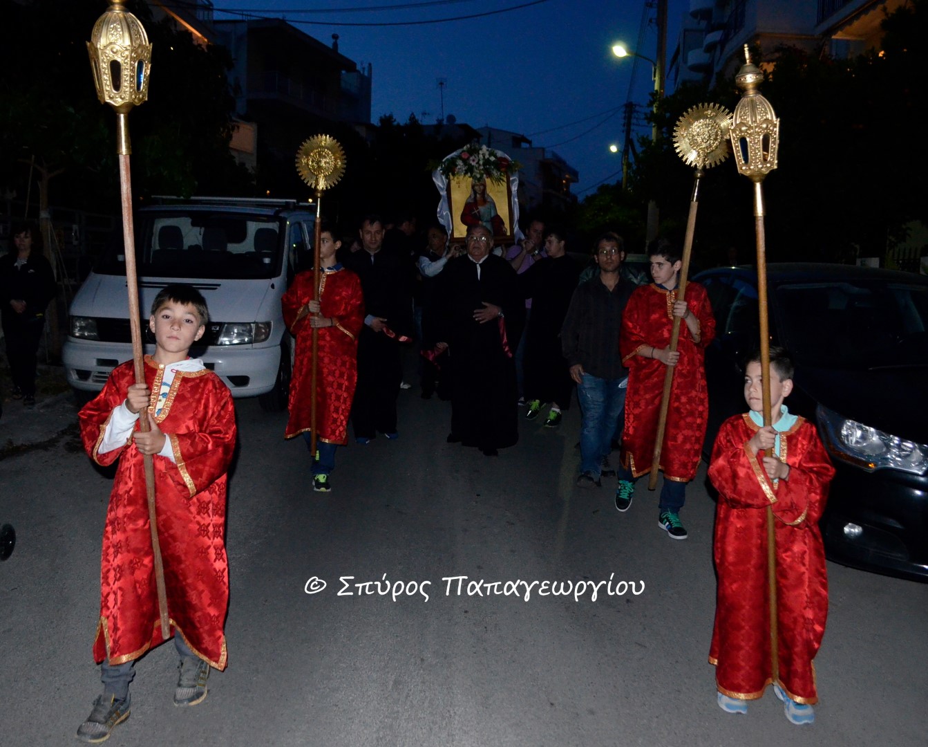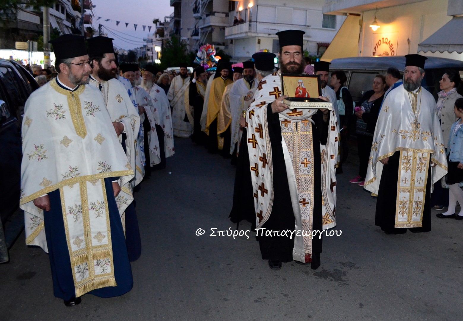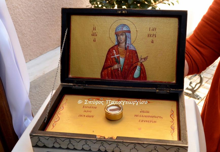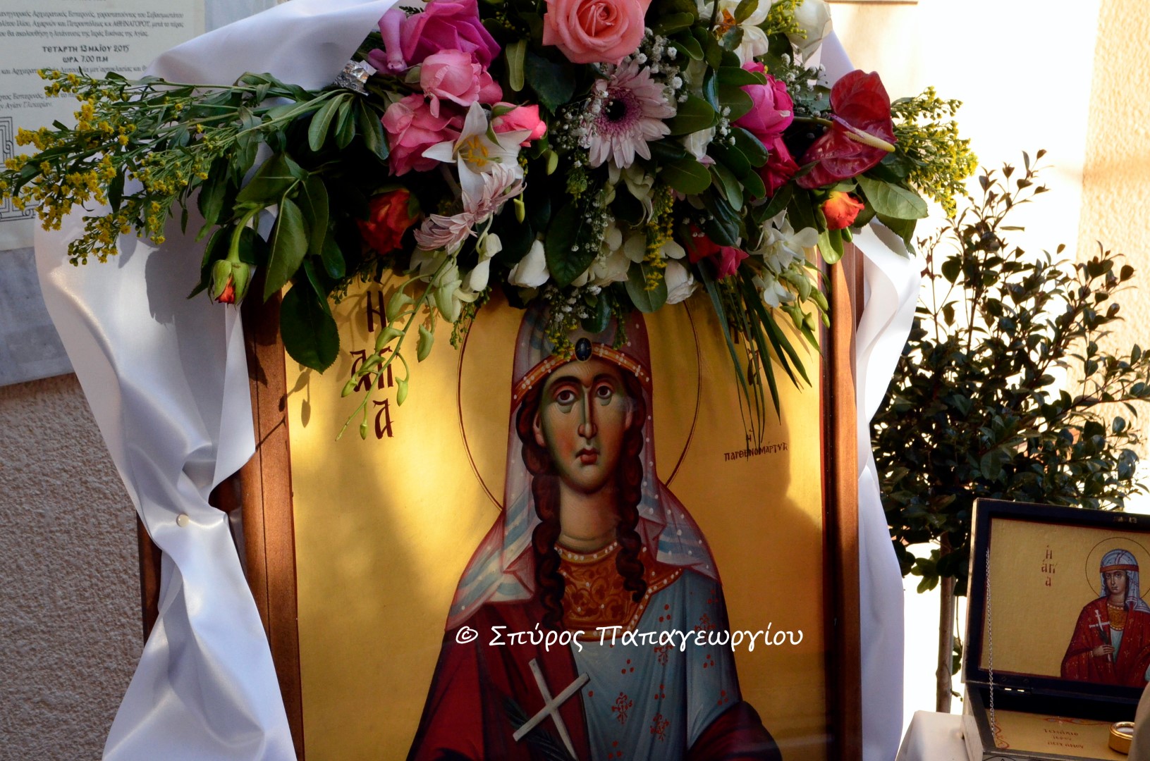 Εν συνεχεία τελέστηκε η λιτάνευση της Εικόνας και του τεμαχίου λειψάνου της Αγίας που φυλάσσεται στο Ναό, υπο τους ήχους της Φιλαρμονικής του Δήμου Πετρουπόλεως.