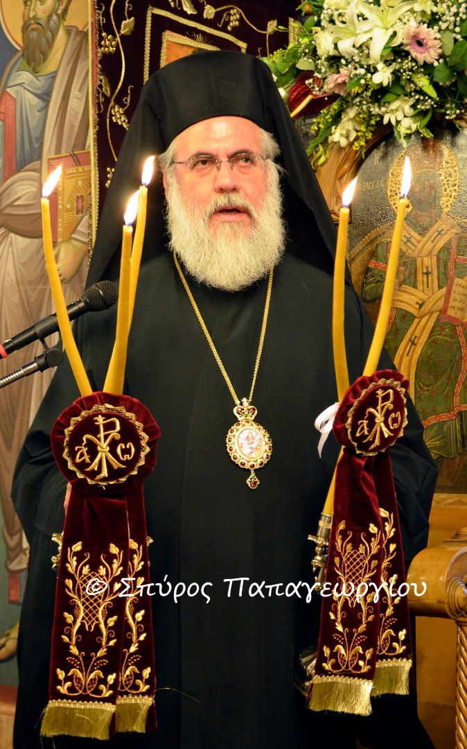 Αναφέρθηκε στην αγιότητα του Θεού την οποία υμνεί η ορατή και η αόρατη κτίση, από την γη έως τον ουρανό. Aνέφερε χαρακτηριστικά πως «Στο προσκλητήριο Αγιότητας ανταποκρίθηκαν πρώτα οι Απόστολοι οι οποίοι ήταν αυτόπτες μάρτυρες της ζωής και του έργου του Χριστού, και κήρυξαν το χαρμόσυνο μήνυμα της Αναστάσεως σε όλη την Οικουμένη. Εν συνεχεία αυτοί που ανταποκρίθηκαν ήταν οι Μάρτυρες, που μαρτύρησαν περί της αληθείας της Αναστάσεως. Έτσι και η Αγία Γλυκερία με την αγιότητα του βίου της και το μαρτύριό της απέδειξε ότι ήταν άξια οικονόμος του Θεού. Και όπως είπε ο ίδιος ο Χριστός “τους δοξάσαντας τὸν Θεόν ἐν ἔργοις καὶ λόγοις ἐπὶ γῆς, αυτούς αντεδοξάσω εν τοις ουρανοίς”».