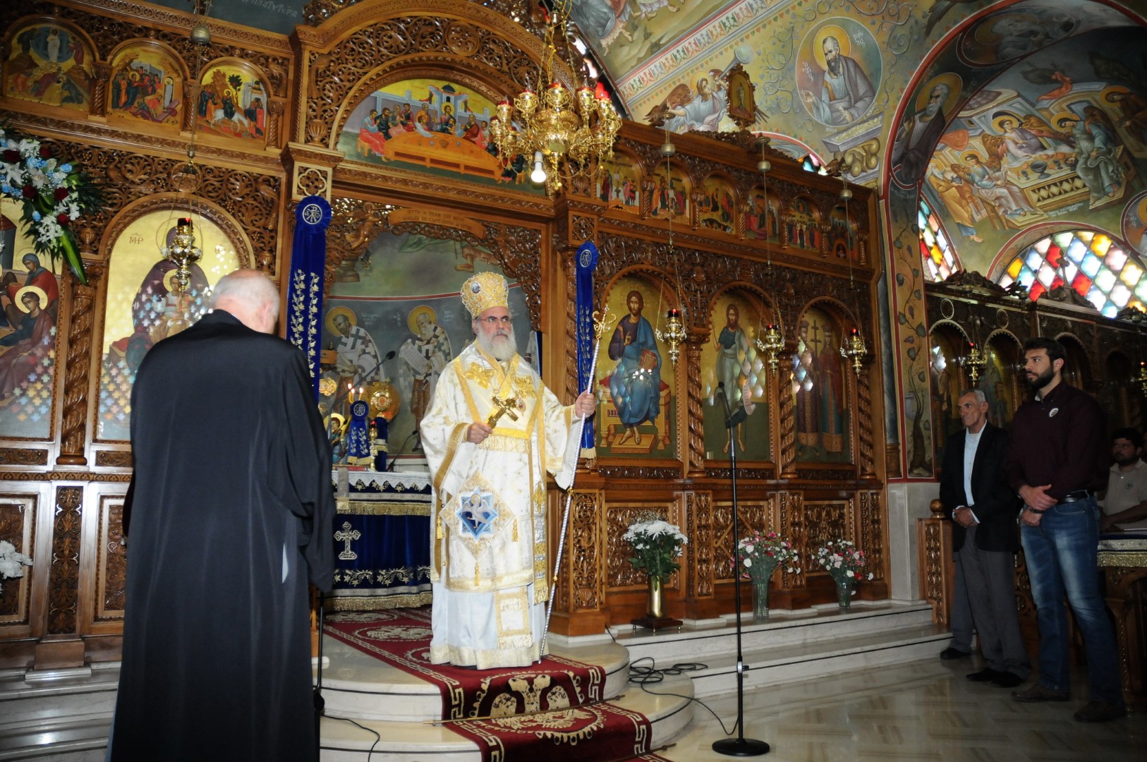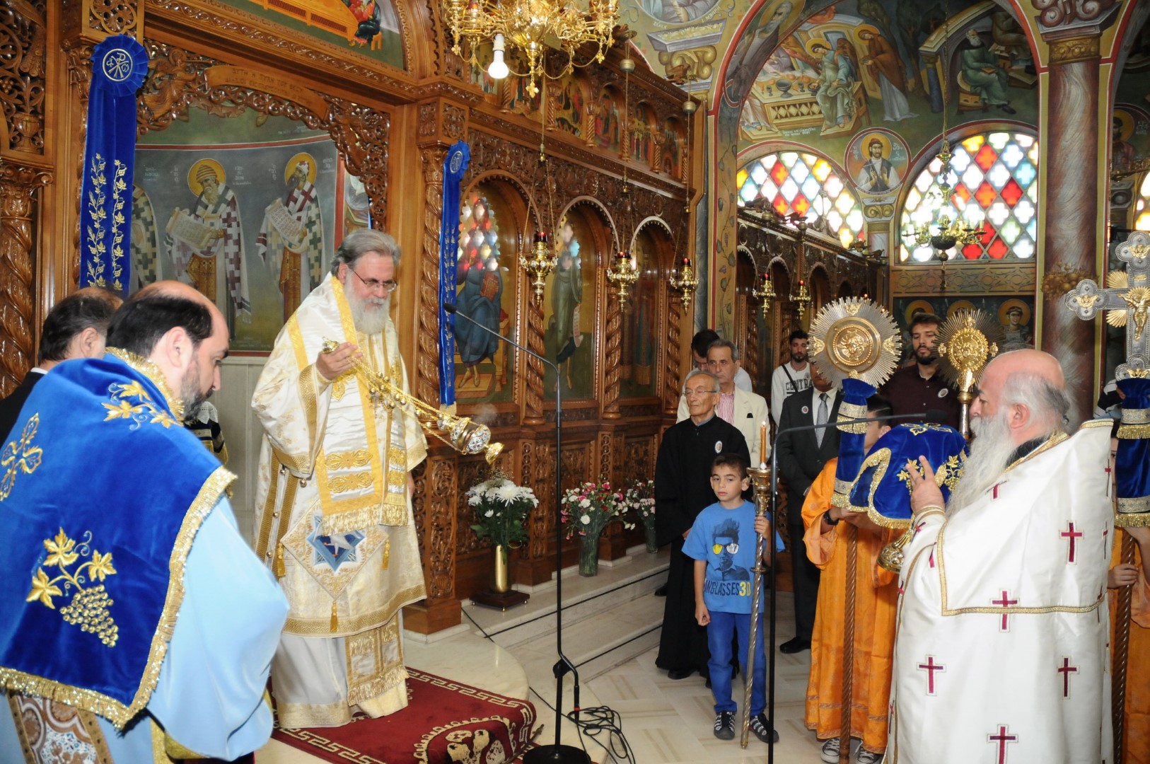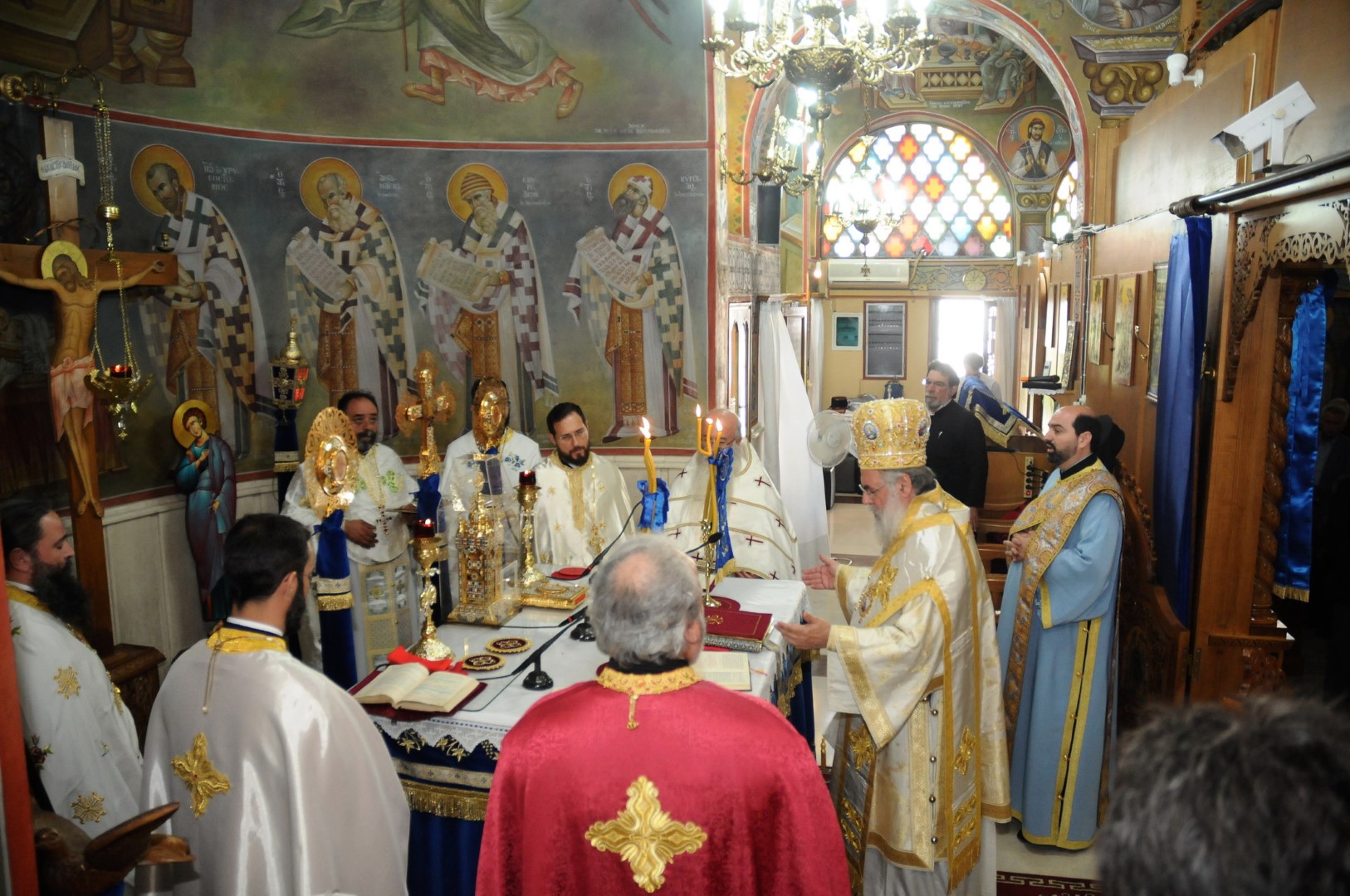 Στον πανηγυρικό Εσπερινό προεξήρχε ο Πανοσ/τος Αρχιμ. Αγαθάγγελος Κόκλας, ιεροκήρυκας της Ι. Μητροπόλεως Ιλίου, ο οποίος κήρυξε τον Θείο Λόγο. Στον όρθρο της Δευτέρας του Αγίου Πνεύματος χοροστάτησε ο Σεβασμιώτατος Μητροπολίτης Ιλίου, Αχαρνών και Πετρουπόλεως κ. Αθηναγόρας, ο οποίος τέλεσε και την Θεία Λειτουργία. Μετά το πέρας της Θείας Λειτουργίας, ο Σεβασμιώτατος τέλεσε την χειροθεσία σε αναγνώστη του Επιτρόπου και στελέχους της Ενορίας κ. Πέτρου Σπυριδωνίδη, και διάβασε την ευχή της ρασοφορίας στον κ. Αντώνιο Βεργούλη.