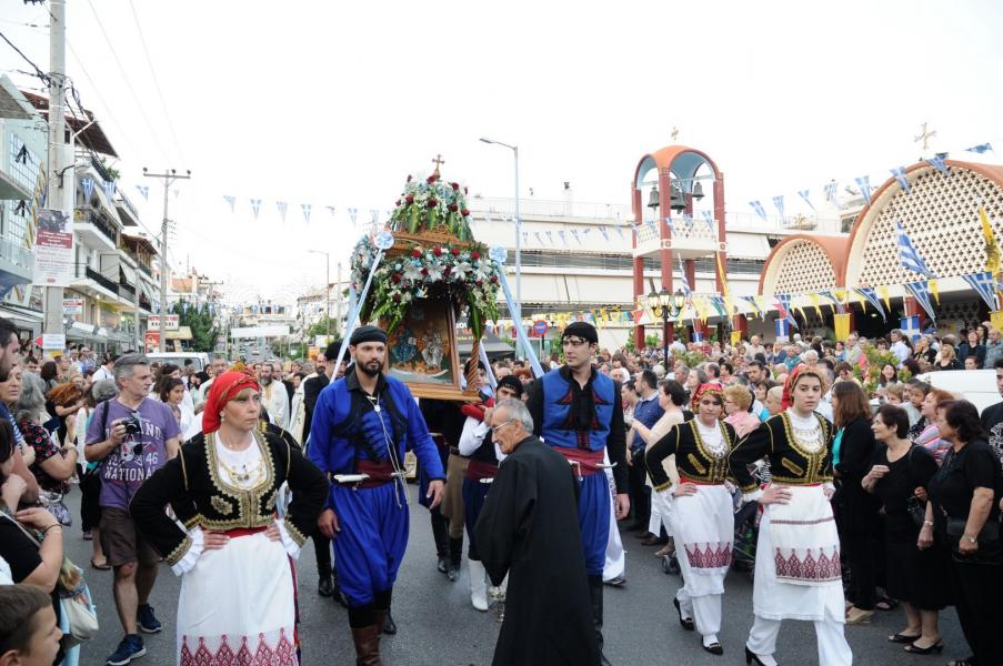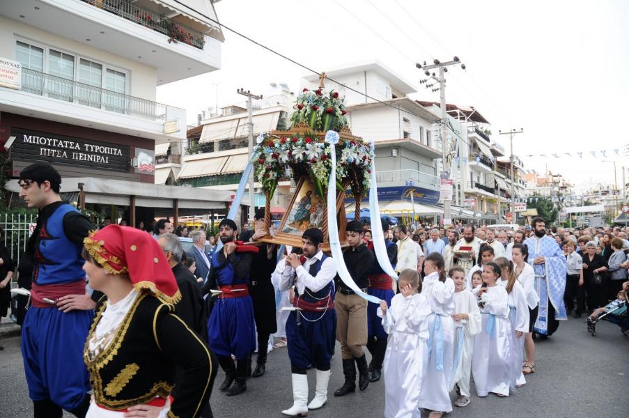 Στην λιτάνευση της Ιεράς Εικόνας παιάνισε η Φιλαρμονική του Δήμου Πετρουπόλεως, ενώ την Εικόνα τίμησαν και μετέφεραν νέοι και οι νέες του Συλλόγου Κρητών Πετρουπόλεως. Καθώς η λιτανευτική πομπή περνούσε πλησίον του Ιερού Παρεκκλησίου Εισοδίων της Θεοτόκου, της Ιεράς Μητροπόλεως Περιστερίου, οι ιερείς και πιστοί από τη γειτονική ενορία υποδέχθηκαν την Εικόνα.