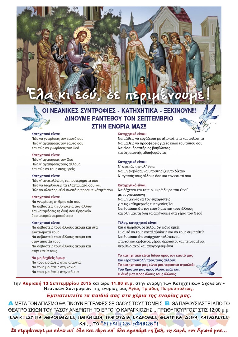 Πλούσιες κι εφέτος οι δραστηριότητες του Ι.Ν. Αγ. Τριάδας Πετρουπόλεως.