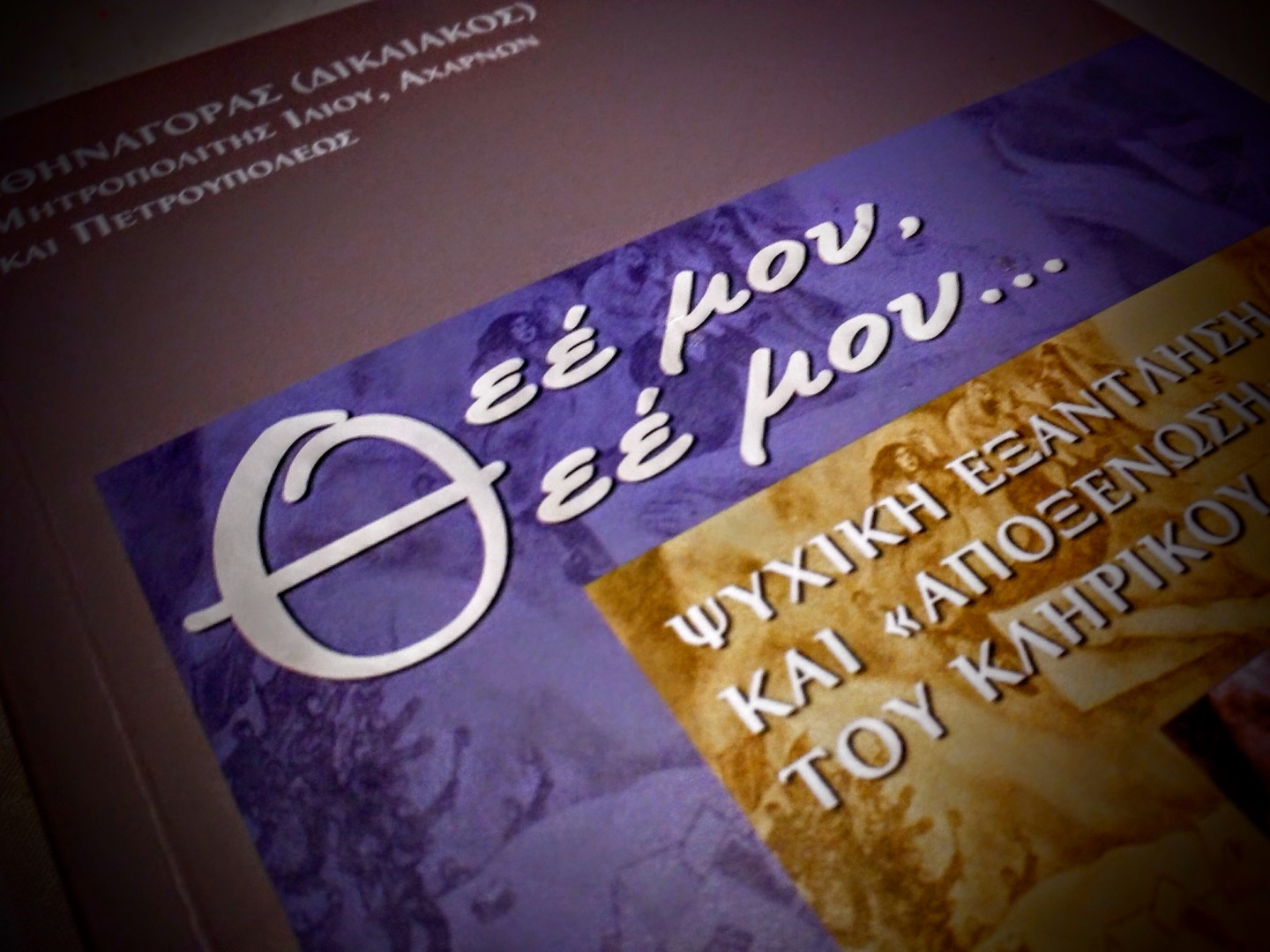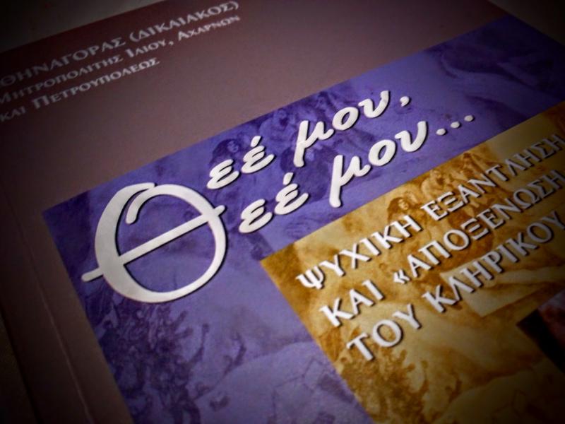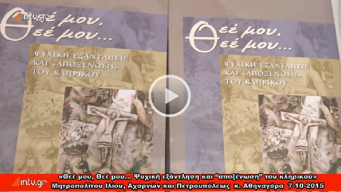 Σεβασμιώτατε Μητροπολίτα Άρτης κ. Ιγνάτιε, εκπρόσωπε του Μακαριωτάτου Αρχιεπισκόπου Αθηνών και πάσης Ελλάδος κ. Ιερωνύμου, Σεβασμιώτατοι άγιοι αρχιερείς, σεβαστοί πατέρες, κυρίες και κύριοι. Θα ήθελα καταρχήν να ευχαριστήσω τους διοργανωτές της αποψινής εκδήλωσης και ειδικότερα τον Θεοφιλέστατο Επίσκοπο Φαναρίου κ. Αγαθάγγελο για την τιμητική πρόσκληση να παρουσιάσω το βιβλίο του Σεβασμιωτάτου Μητροπολίτου Ιλίου, Αχαρνών και Πετρουπόλεως κ. Αθηναγόρα, με τίτλο, «Θεέ μου, Θεέ μου… Ψυχική εξάντληση και “αποξένωση” του κληρικού». Πρόκειται για «καρπό υγιούς και ακάματης ποιμαντικής ανησυχίας», ένα «πολύτιμο έργο», όπως σημειώνει ο Μακαριώτατος στον Πρόλογο.