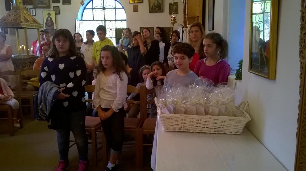 Όλοι οι μικροί φίλοι της συντροφιάς από πολύ νωρίς έδωσαν το παρόν, πλημμυρίζοντας το εκκλησάκι του Αγίου Αντωνίου με ματιές γεμάτες αγάπη και προσμονή για τη νέα κατηχητική χρονιά. Φυσικά, δεν έλειψε και η λαχτάρα για τα κεράσματα που θα ακολουθούσαν μετά τον Αγιασμό, φτιαγμένα από τα χεράκια της κ. Μαρίας Ροζακέα.