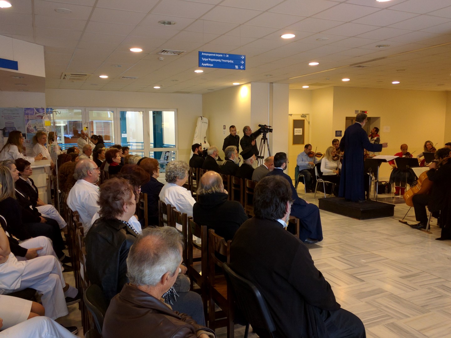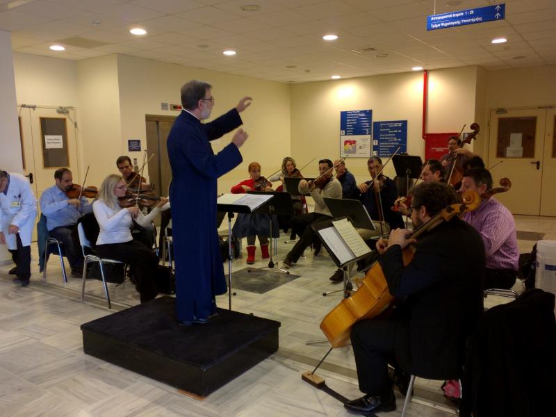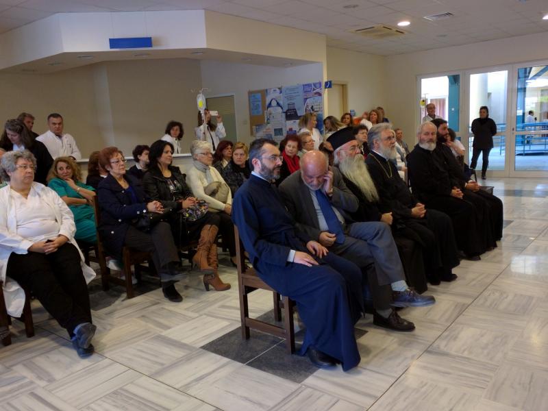 Πριν την έναρξη της συναυλίας, ο Σεβασμιώτατος, συνοδευόμενος από τον Πρωτοσύγκελλο της Ι.Μ. Ιλίου Αρχιμ. Γαβριήλ Ασπρολούπο και τους εφημερίους του νοσοκομείου, επισκέφθηκε θαλάμους, ευχήθηκε καλή ανάρρωση στους ασθενείς και τους μοίρασε γιορτινά αναμνηστικά.