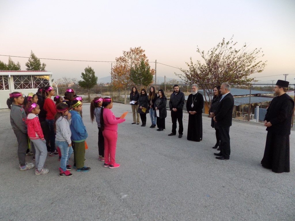 Ο Σεβασμιώτατος, αφού συμβούλευσε τους μαθητές με πατρικό ενδιαφέρον, ευχαρίστησε το Δήμο Αχαρνών για την πολύτιμη βοήθειά του στην εκπόνηση του προγράμματος, την διεύθυνση του σχολείου για την εγκάρδια συνεργασία και το εκπαιδευτικό προσωπικό για τον καθημερινό αγώνα που δίνουν για την πρόοδο των μαθητών με ρομική καταγωγή και την ενίσχυση του εκπαιδευτικού έργου της σχολικής μονάδας. Τέλος αναφέρθηκε και στη ευγενική χορηγία του Ομίλου εταιριών «Ελληνικά Πετρέλαια», υπογραμμίζοντας την σπουδαιότητά της, για την φετινή άρτια λειτουργία της πρωτοβουλίας αυτής.