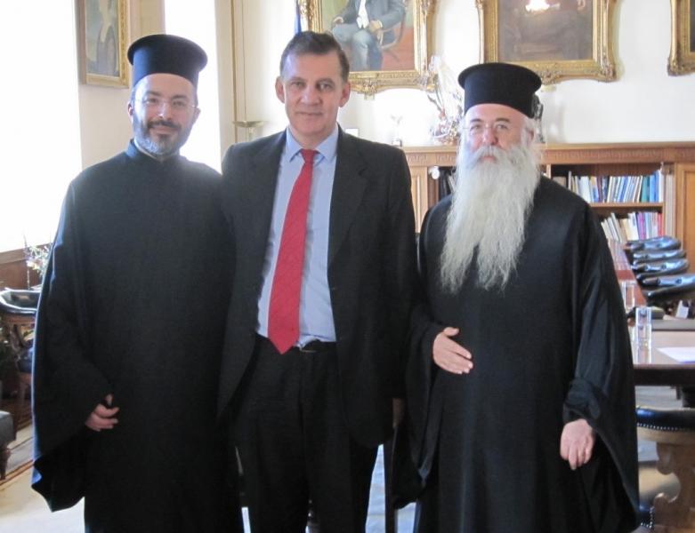 Με την ευλογία του Σεβασμιωτάτου Μητροπολίτου Ιλίου, Αχαρνών και Πετρουπόλεως κ. Αθηναγόρου, την Πέμπτη 3 Μαρτίου 2016 ο πανοσ. αρχιμ. π. Γαβριήλ Ασπρολούπος, Πρωτοσύγκελλος της Ιεράς Μητροπόλεως Ιλίου και ο πανοσ. αρχιμ. Δρ Θεοδόσιος Μανώλης, Εφημέριος του Γενικού Ογκολογικού Νοσοκομείου «οι Άγιοι Ανάργυροι», ως υπεύθυνοι του Εκπαιδευτικού Προγράμματος που οργανώνει η Ιερά Μητρόπολη με θέμα «ΕΘΕΛΟΝΤΙΚΗ ΔΙΑΚΟΝΙΑ ΟΓΚΟΛΟΓΙΚΩΝ ΑΣΘΕΝΩΝ», συναντήθηκαν στην Πρυτανεία με τον Πρύτανη του Εθνικού και Καποδιστριακού Πανεπιστημίου Αθηνών, καθηγητή της Ιατρικής Σχολής του Πανεπιστημίου Αθηνών και διευθυντή της πανεπιστημιακής Θεραπευτικής Κλινικής του Νοσοκομείου «ΠΓΝΑ Αλεξάνδρα» κ. Μελέτιο-Αθανάσιο Δημόπουλο.