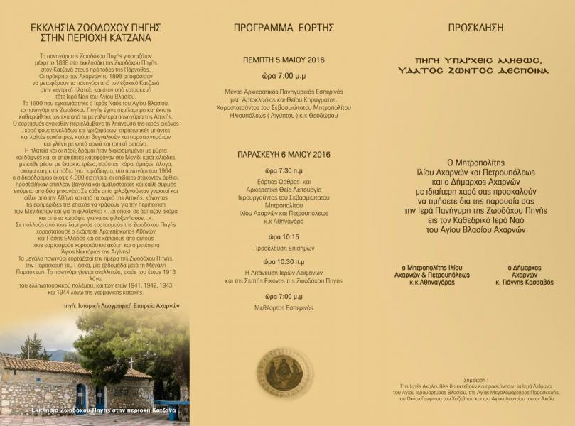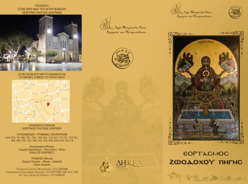 Πανηγυρίζουν οι Αχαρνές και ο Ιερός Ναός Αγίου Βλασίου τη μεγάλη τοπική εορτή της Ζωοδόχου Πηγής.