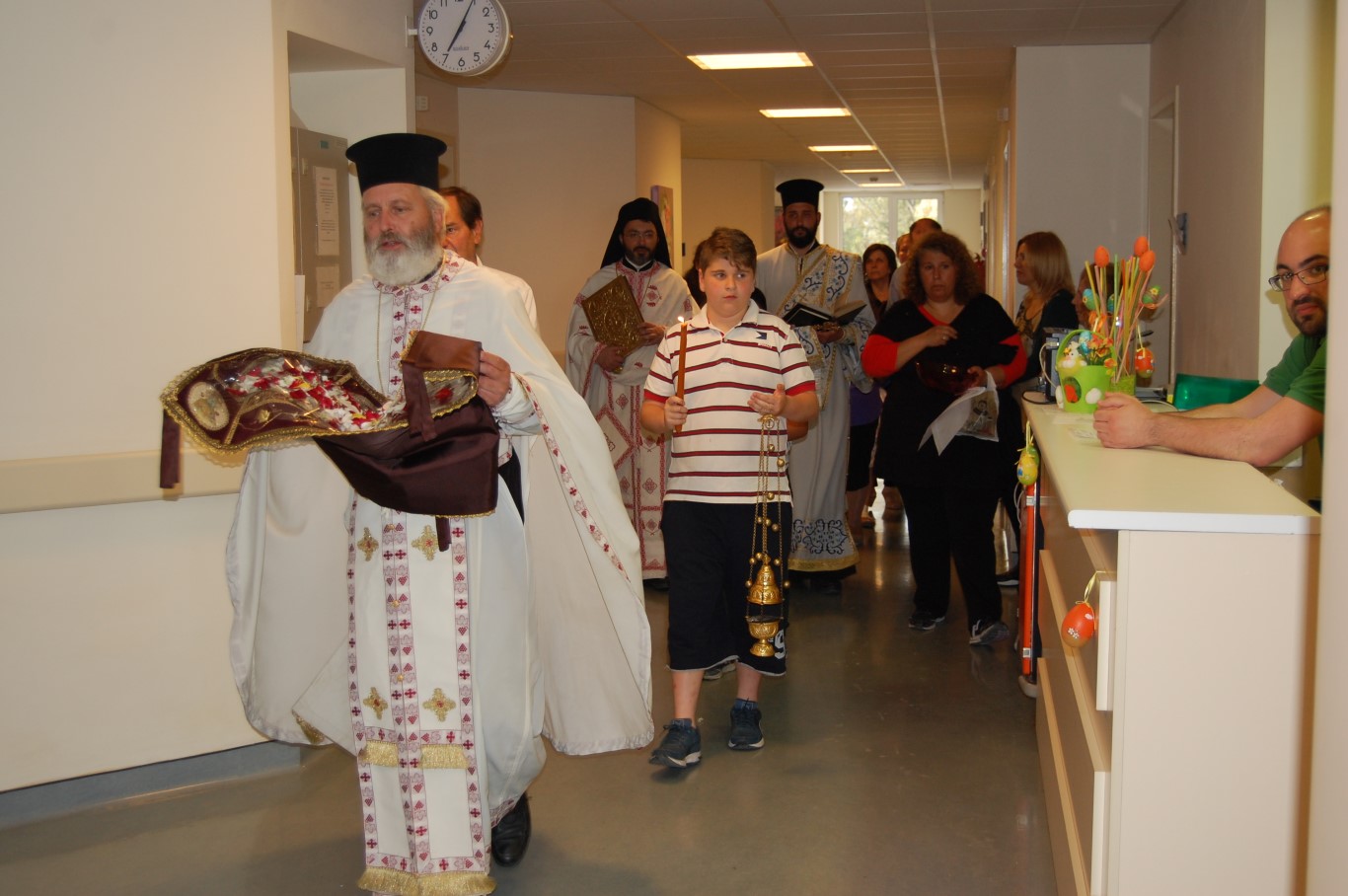 Η καθιερωμένη τελετή περιφοράς του Επιταφίου πραγματοποιήθηκε το απόγευμα της Μ. Παρασκευής 29/4/2016 στο Γενικό Ογκολογικό Νοσοκομείο Κηφισιάς «Άγιοι Ανάργυροι» παρόντος του Ιατρικού και νοσηλευτικού προσωπικού του νοσοκομείου.
