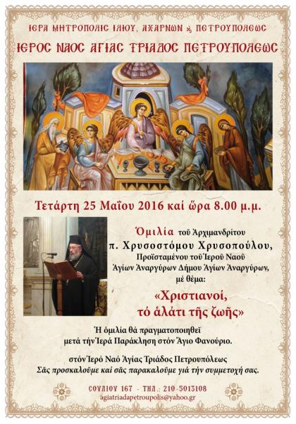 Ομιλία π. Χρυσοστόμου Χρυσόπουλου στην Αγ. Τριάδα Πετρ.