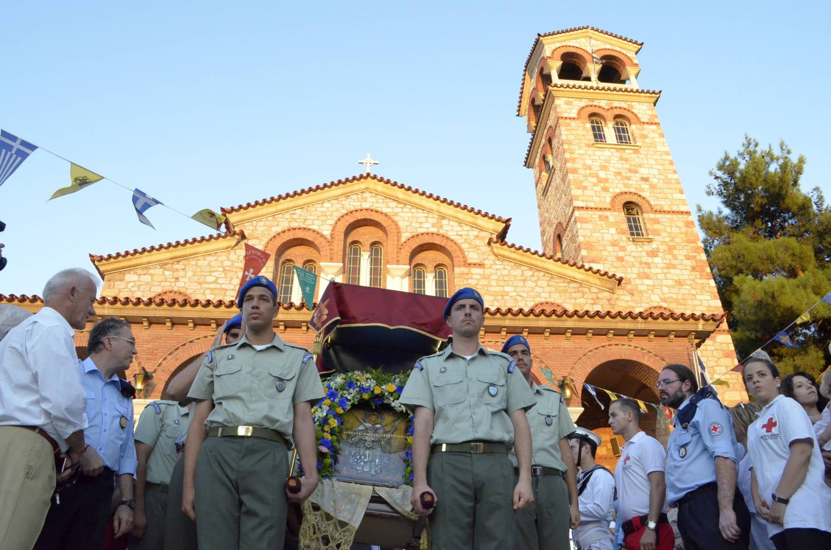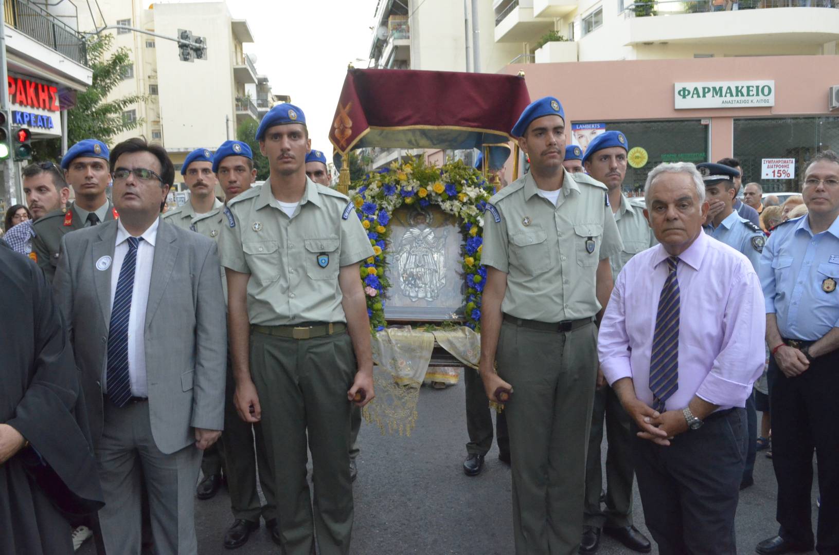 Με την επιστροφή της πομπής στο Ναό ο προϊστάμενος του Ναού, ευχαρίστησε τον Μητροπολίτη κ. Αθηναγόρα που λάμπρυνε το πέρας των εκδηλώσεων καθώς και όλους όσους επώνυμους και ανώνυμους συμμετείχαν και συνέβαλαν στην διοργάνωση των εορταστικών εκδηλώσεων. Η βραδιά έκλεισε με το παιάνισμα του εθνικού ύμνου που έψαλλε όλος ο κόσμος.