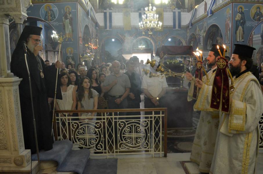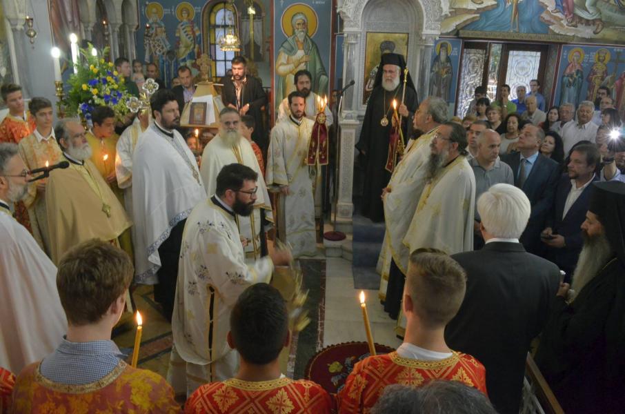 Το απόγευμα της Δευτέρας 18/7/2016 τελέσθηκε ο μεθέορτος εσπερινός όπου χοροστάτησε ο Σεβ. Μητροπολίτης Ιλίου, Αχαρνών και Πετρουπόλεως, κατόπιν ευγενούς προσκλήσεως του προϊσταμένου π. Νικολάου Αργυρόπουλου, συμπαραστατούμενος από τον Πρωτοσύγκελλο της Αρχιεπισκοπής Αρχιμ. Συμεών Βολιώτη και άλλους ιερείς της ΣΤ’ Αρχιεπισκοπικής Περιφέρειας.