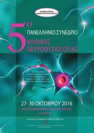 Συμμετοχή στο 5ο Πανελλήνιο Συνέδριο Κλινικής Νευροφυσιολογίας που πραγματοποιήθηκε υπο την αιγίδα της Ελληνικής Εταιρείας Κλινικής Νευροφυσιολογίας στην Κατερίνη από 27 έως 30 Οκτωβρίου 2016.