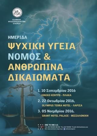 Συμμετοχή στην Ημερίδα με θέμα «Ψυχική Υγεία, Νόμος και Ανθρώπινα Δικαιώματα» που πραγματοποιήθηκε στις 10 Σεπτεμβρίου 2016 στο Ιωνικό Κέντρο Λυσίου 11 στην Πλάκα.