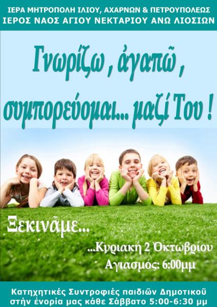 Ξεκινούν οι κατηχητικές συνάξεις στον Αγ. Νεκτάριο Άνω Λιοσίων