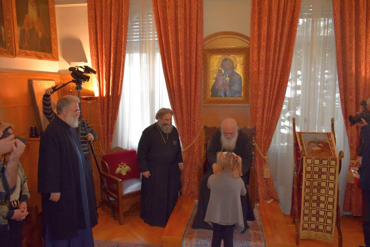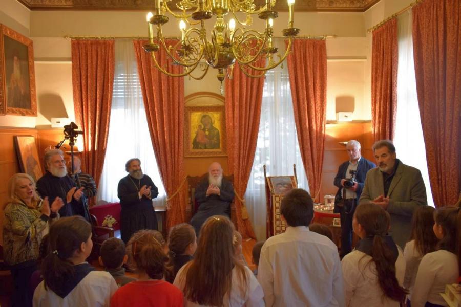 Ο Μακαριώτατος υποδέχθηκε τα παιδιά με εγκαρδιότητα και τους έδωσε απλόχερα ευχές και δώρα.
