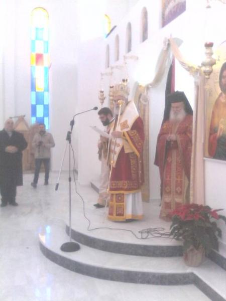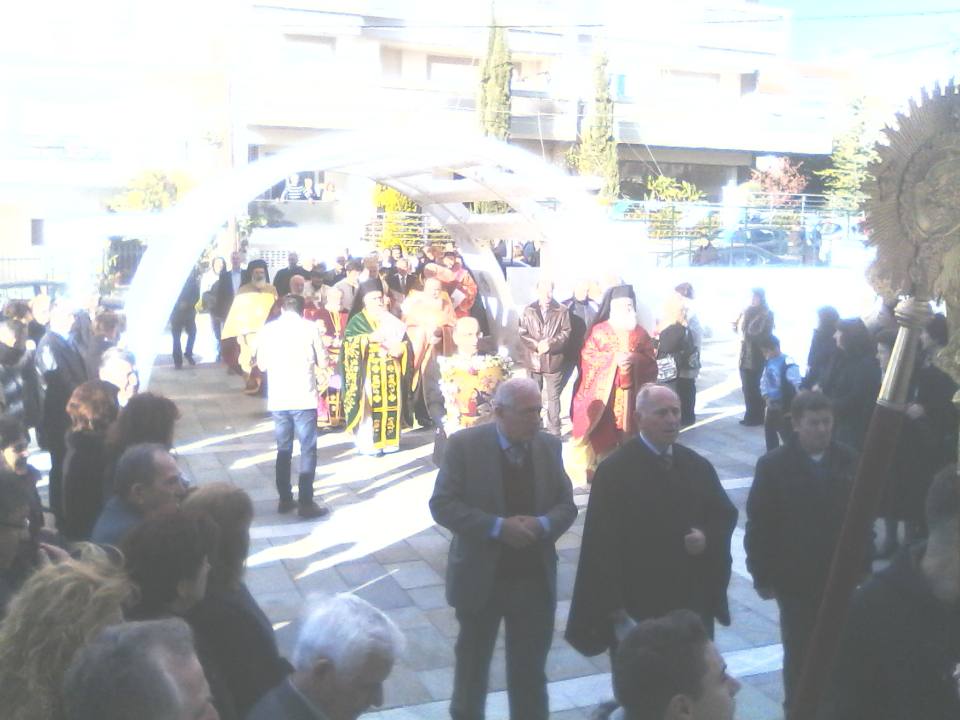 Στην Θεία Λειτουργία προεξήρχε ο Σεβασμιώτατος Μητροπολίτης Ιλίου, Αχαρνών και Πετρουπόλεως κ. Αθηναγόρας μαζί με πλειάδα ιερέων. Παρευρέθηκαν οι άρχοντες του τόπου και επίσης πλήθος κόσμου, που τίμησαν την Θεοτόκο και τον γεννηθέντα Ιησού. Αμέσως μετά έγινε η λιτάνευση της εικόνας και στο τέλος έγιναν τα Θυρανοίξια του νέου Ιερού Ναού. Η συγκίνηση των ενοριτών, οι οποίοι είδαν την πραγματοποίηση του πολυπόθητου ονείρου τους, ήταν πολύ μεγάλη.