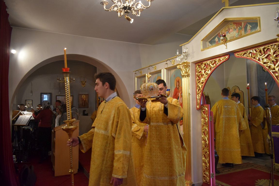 Η ακολουθία ήταν ιδιαίτερη καθώς στον συγκεκριμένο Ιερό Ναό οι ακολουθίες τελούνται κατά το ρωσικό τυπικό, στη ρωσική γλώσσα.