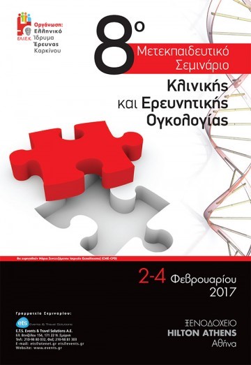Πραγματοποιήθηκε το 8ο Μετεκπαιδευτικό Σεμινάριο Κλινικής και Ερευνητικής Ογκολογίας που διοργανώθηκε από το Ελληνικό ΄Ιδρυμα Έρευνας του Καρκίνου (Ελ.Ι.Ε.Κ.), στις 2-4 Φεβρουαρίου, στην Αθήνα. Oι εργασίες του συνεδρίου κάλυψαν, μεταξύ άλλων την συνεχή ανάπτυξη νέων φαρμάκων, την ταυτοποίηση σημαντικών προβλεπτικών παραγόντων που οδηγούν στην εξατομικευμένη θεραπεία, η αντιμετώπιση της νόσου με συνδυασμένες και εξατομικευμένες θεραπείες καθώς και τις  εξελίξεις στην τεχνολογία. Θεματικές ενότητες του Συνεδρίου ήταν: