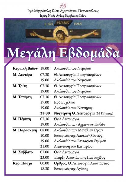 Πρόγραμμα ακολουθιών Μεγάλης Εβδομάδας