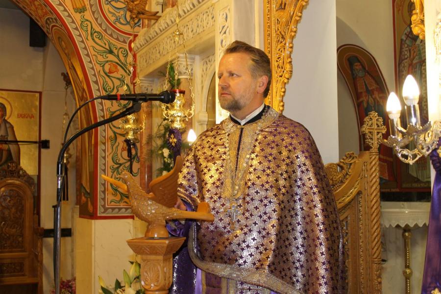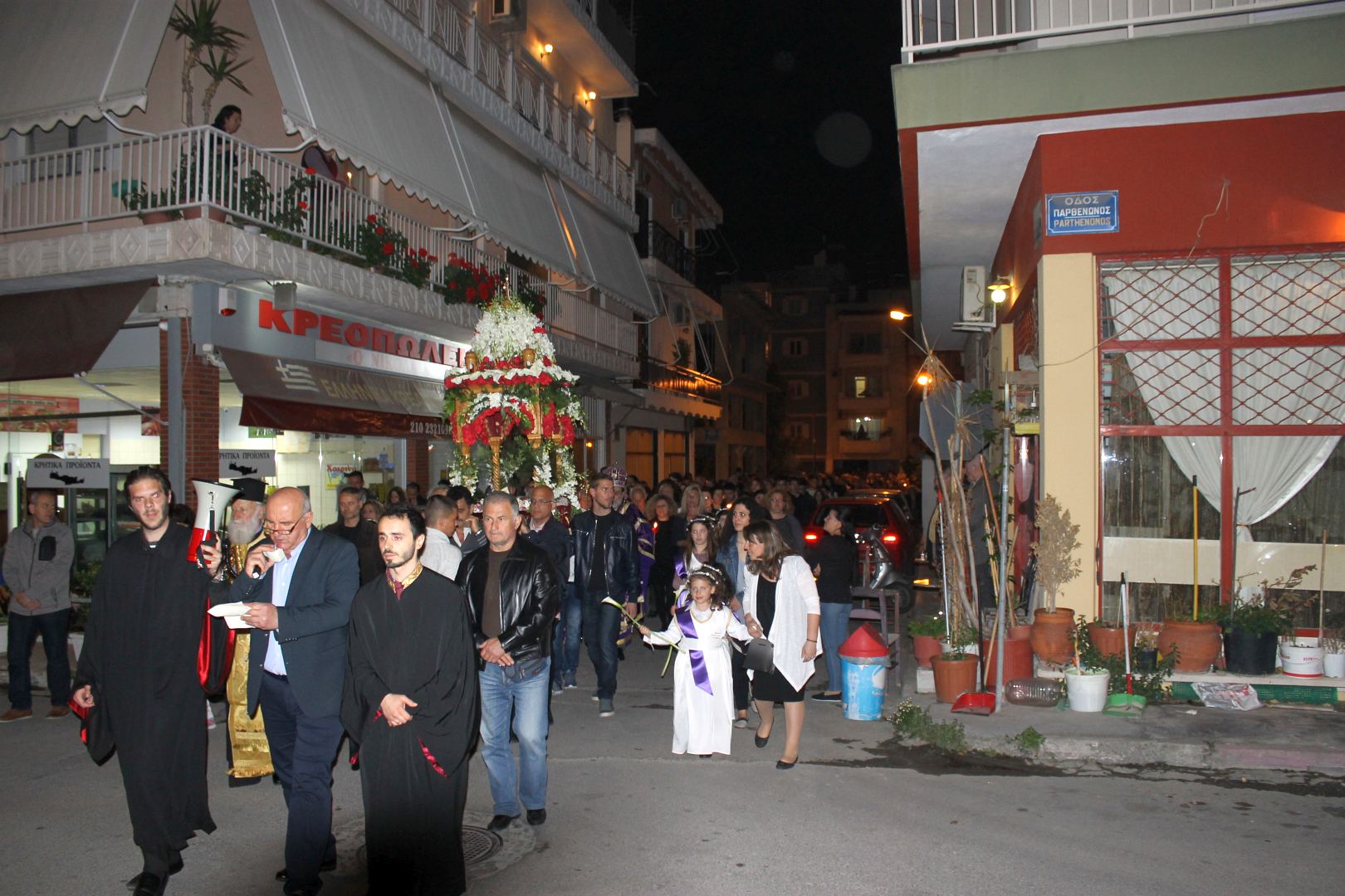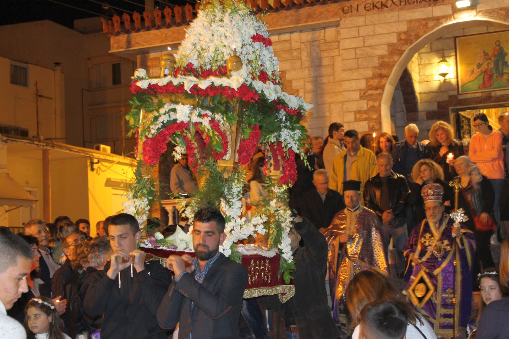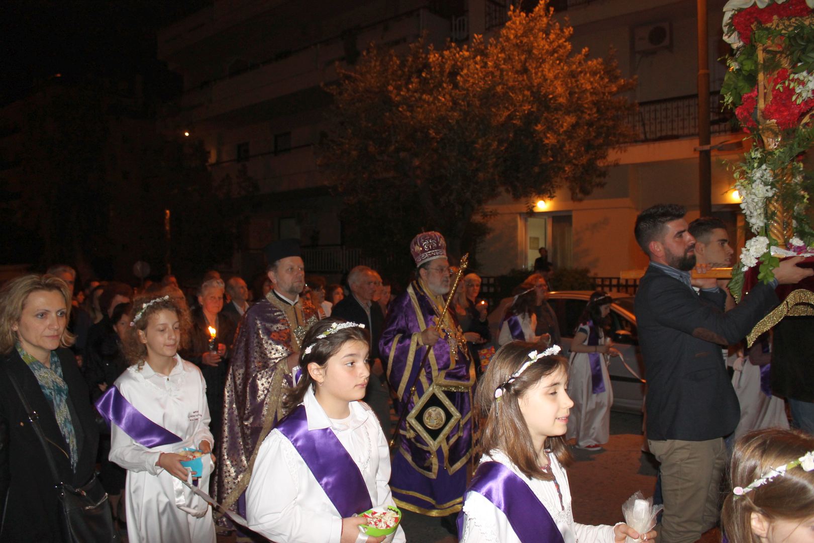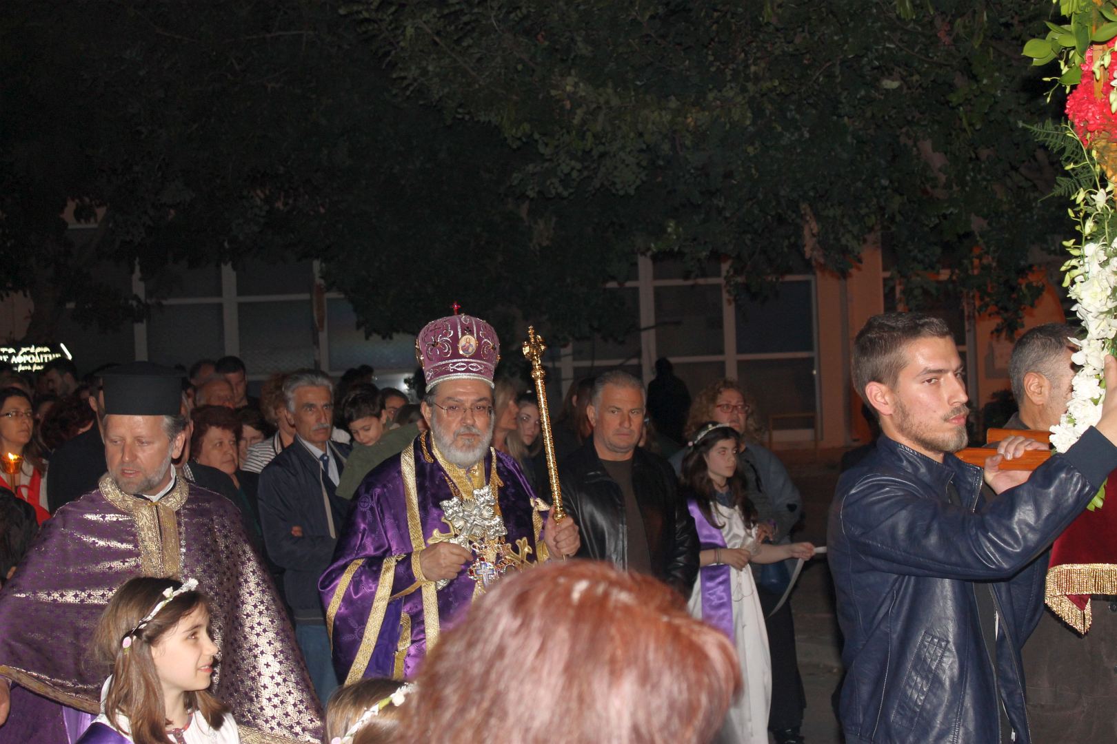 Ο Σεβασμιώτατος αφού χοροστάτησε στην ακολουθία του Επιταφίου, συμπροσευχόμενος μετά του προϊσταμένου του Ιερού Ναού π. Κωνσταντίνου Λαμπρόπουλου και του π. Ηλία Λαμπρόπουλου, λάμπρυνε με την παρουσία του τη λιτανευτική πομπή. Στη συνέχεια και με την επιστροφή στον Ιερό Ναό ο Σεβασμιώτατος εκφώνησε λαμπρό λόγο για την κάθοδο του Κυρίου στον Άδη αλλά και για Αυτόν τον «Ξένον» που ήρθε και έδωσε το αίμα Του προς Σωτηρία του ανθρωπίνου γένους. Τέλος αφού ευχαρίστησε τον π. Κωνσταντίνο και τους ανθρώπους του Ι.Ν., ευχήθηκε στο χριστεπώνυμο ποίμνιο «Καλή Ανάσταση».