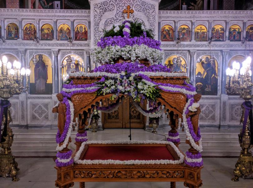Ολοκληρώθηκε ο στολισμός του Επιταφίου, ξημερώματα Μεγάλης Παρασκευής, στις 2:30.