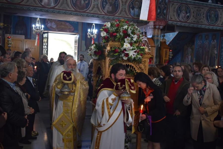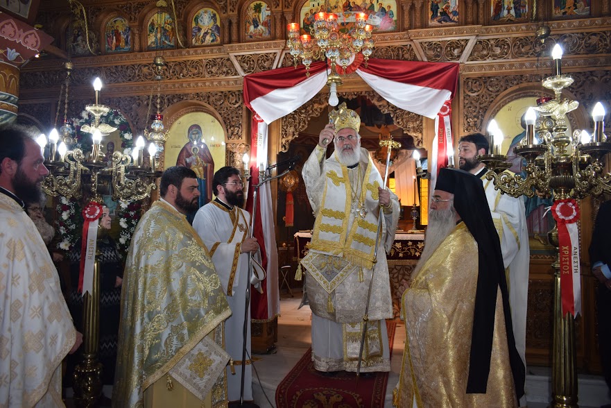 Την κυριώνυμο ημέρα της πανηγύρεως, προεξήρχε της Θείας Λειτουργίας ο Σεβασμιώτατος Μητροπολίτης Ιλίου, Αχαρνών και Πετρουπόλεως κ. Αθηναγόρας. Τον Θείο Λόγο κήρυξε ο Εφημέριος του Ιερού Ναού π. Μάξιμος Αδαμίδης, λέγοντας για την αποχριστιανοποίηση του Λαού μας και για την ανάγκη να έρθει σε επαφή ο κόσμος μας με την Παναγία για να υπάρξει πνευματική πρόοδος. Στο τέλος της Θείας Λειτουργίας ο Σεβασμιώτατος Μητροπολίτης Ιλίου, Αχαρνών και Πετρουπόλεως κ. Αθηναγόρας χειροθέτησε σε πνευματικό τον νέο Εφημέριο του Ιερού Ναού π. Στυλιανό Τζινευράκη.