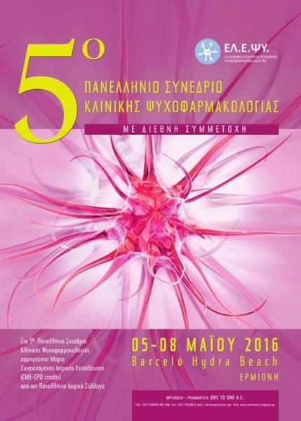 Συμμετοχή στο 5ο ΠΑΝΕΛΛΗΝΙΟ ΣΥΝΕΔΡΙΟ ΚΛΙΝΙΚΗΣ ΨΥΧΟΦΑΡΜΑΚΟΛΟΓΙΑΣ που έγινε (Με Διεθνή Συμμετοχή) και πραγματοποιήθηκε στο BARCELO’ HYDRA BEACH RESORT 5/5/2016 – 8/5/2016.